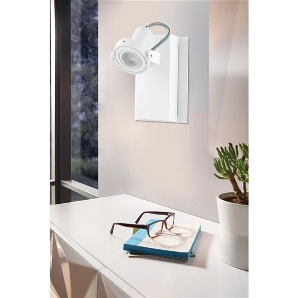 Apportez un style industriel moderne à votre espace avec l’applique murale Novorio 1. Le fini blanc classique complétera n’importe quel style de maison. La tête du projecteur pivote sur 3 points d’axe pour vous donner un contrôle complet sur l’endroit où vous envoyez la lumière. Ne laissez aucun coin sombre dans votre couloir, salon, garde-robe ou chambre à coucher avec cette applique impressionnante.Fini blancUtilise 1 x 35 W max ampoule à culot GU10 (vendue séparément)Interrupteur à bascule situé sur la montureTête de lampe réglablePeut être installé comme plafonnier ou applique muraleConviens aux emplacements humides