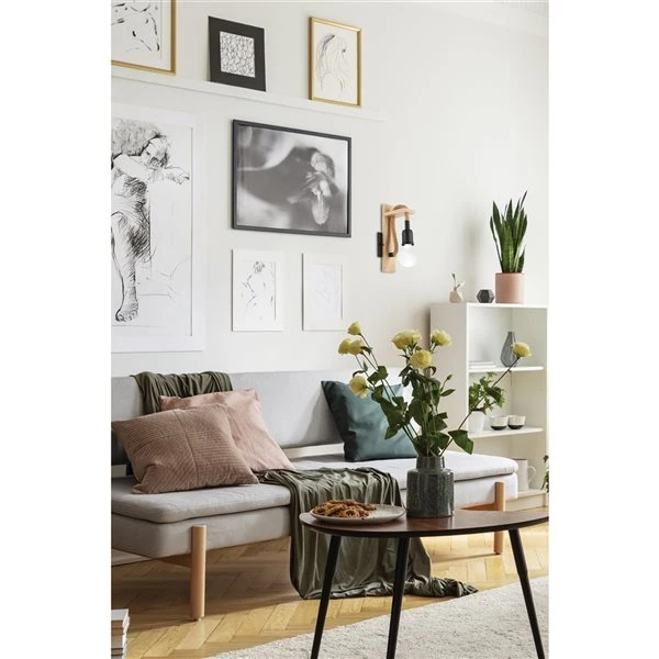 Applique Murale De Style Côtier à 1 lumière Rampside Par Eglo De 4,25 po, Bois Et Noir