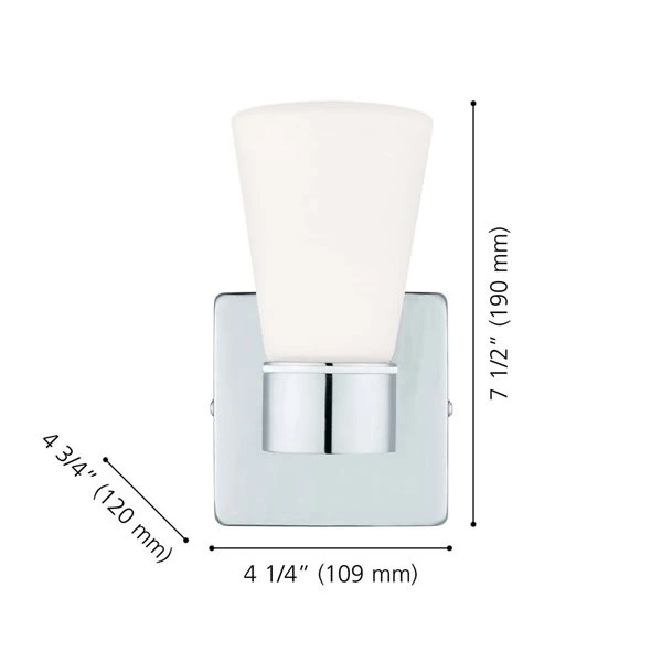 L’applique murale Cailin offre des lignes épurées pour une touche moderne. Cette applique en chrome brillant avec verre de forme conique blanc fournira une abondance de lumière pour votre salle de bains, chambre, salon ou couloir. Offrant une flexibilité de design, cette applique murale peut être installée avec le verre vers le haut ou vers le bas pour répondre à vos besoins et à votre style. Laissez l’élégance simple de cette applique transformer instantanément votre espace.Fini chrome avec abat-jour en verre blancUtilise 1 x 40 W max ampoule à culot G9 (incluse)Peut être installé avec l’abat-jour orienté vers le haut ou vers le basConviens aux emplacements humides