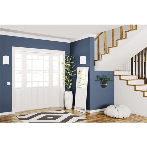 Créez une ambiance éternelle avec le style courbé du luminaire à DEL Grafik. Le profil bas de ce luminaire le rend conforme à la norme ADA. Il peut être monté verticalement, horizontalement ou au plafond, ce qui le rend parfait pour n’importe quelle pièce de la maison. La technologie DEL intégrée vous permet d’installer et d’admirer la simplicité de la lumière sans avoir à vous soucier des changements d’ampoule à l’avenir.Fini argent avec abat-jour en verre blancUtilise une ampoule de 8,2 W à DEL intégrée (non remplaçable)810 lumens, 3 000 K, blanc chaudLuminosité non variablePeut être installé comme plafonnier ou luminaire muralConvient aux emplacements humides