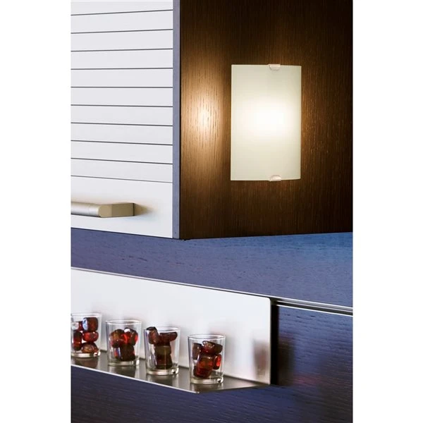 L’applique murale Fondo aux accents de nickel mat est adoucie par un verre blanc givré pour une touche moderne. Fabriqué avec la plus haute qualité pour éclairer et transformer, ce luminaire conforme à la norme ADA a la polyvalence d’être installé verticalement et horizontalement selon vos besoins. Avec sa classe simple et sa capacité d’être utilisé dans des endroits humides, le Fondo est parfait pour toutes les pièces.Fini nickel mat avec abat-jour en verre satinUtilise 1 ampoule à culot G9 de 40 W maximum (vendue séparément)Peut être installé comme plafonnier ou luminaire mural
