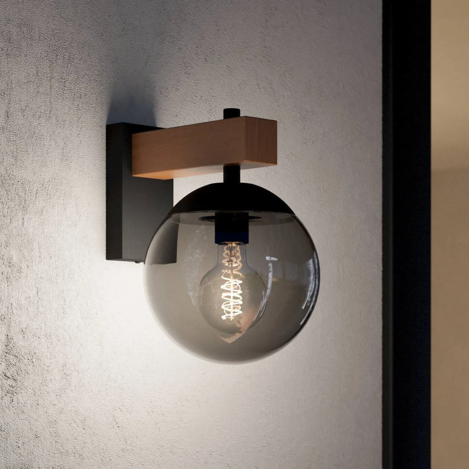 EGLO Applique Extérieur Bufalata Noire/bois, Verre Fumé