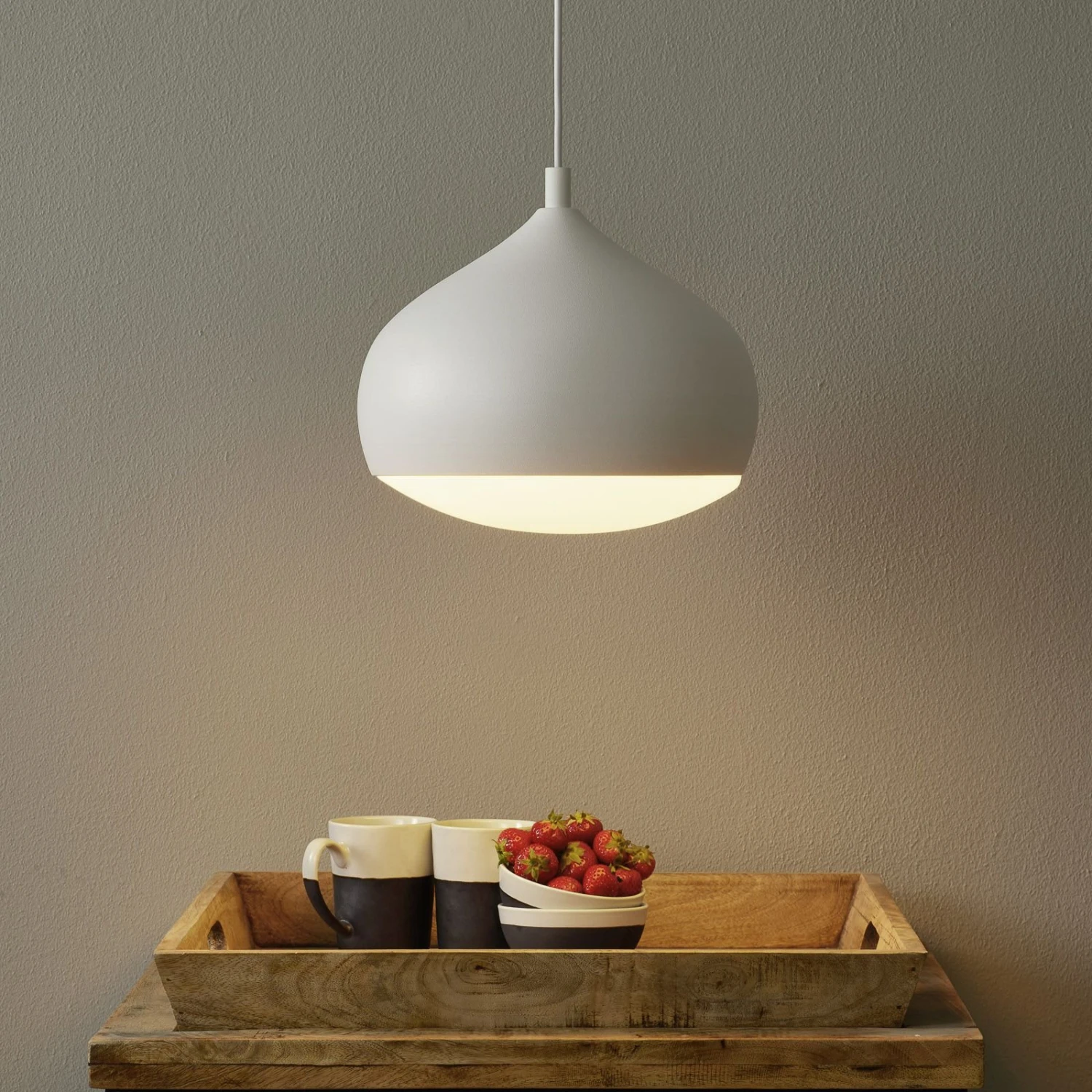 Le luminaire suspendu à LED Comba-C parle un langage de conception clair, qui se caractérise par un style scandinave délicat et qui marque des points par sa fonctionnalité. L’abat-jour aux formes particulièrement belles inspire par son aspect blanc et pur et rayonne une lumière tout aussi agréable. Grâce à une télécommande, la lampe peut être contrôlée depuis le canapé. Qu’il s’agisse de la mise en marche ou de l’arrêt, de la variation continue de l’intensité lumineuse ou du choix de la couleur de la lumière parmi d’innombrables nuances de couleur et de blanc, tout cela peut être appelé et réglé en un rien de temps grâce à la télécommande. Ainsi, la lampe suspendue peut être parfaitement adaptée à la situation.