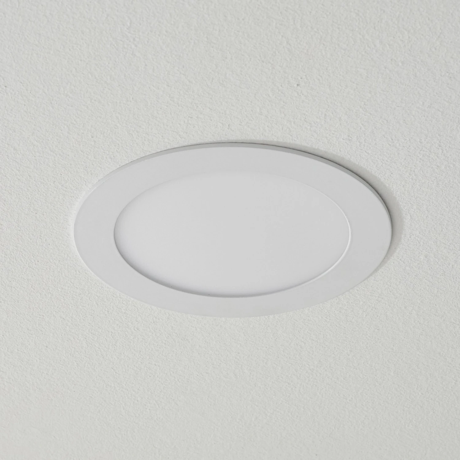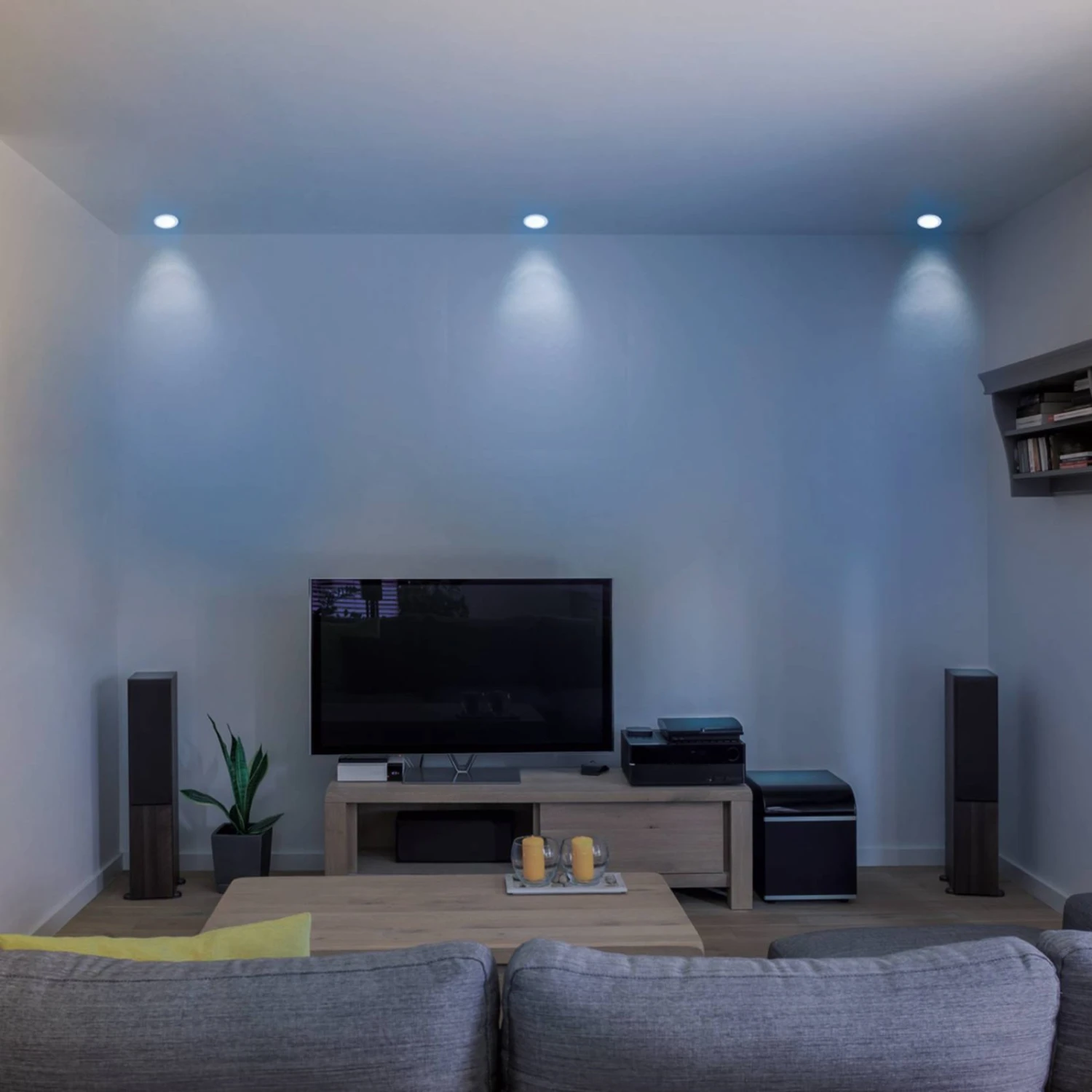 Spot LED encastré rond Fueva Connect, contrôlable via une applicationLe spot LED encastré rond blanc Fueva Connect permet d’éclairer une pièce de manière absolument flexible et peut être contrôlé via un smartphone ou une tablette. Le spot est en métal moulé blanc avec un diffuseur blanc en plastique et s’intègre dans presque tous les concepts de couleurs. L’application gratuite, disponible pour Android et IOS, permet de régler l’éclairage même en déplacement. Outre l’éclairage blanc, qui peut être sélectionné en continu dans une plage allant de la lumière blanche chaude de 2.700 K à la lumière du jour de 6.500 K, il est possible de choisir parmi 16 millions de couleurs vives. La luminosité peut être variée en continu dans chaque couleur, il est possible de créer des créations lumineuses, de les enregistrer et de les rappeler. Les changements de couleur peuvent être sélectionnés à différentes vitesses, il est possible de former des groupes de luminaires et bien plus encore. Les possibilités d’éclairage sont presque illimitées. La télécommande disponible en tant qu’accessoire constitue une autre forme de commande. Elle peut être commandée directement avec la télécommande. La télécommande permet également de sélectionner les différentes couleurs de lumière colorée et blanche, de faire varier l’intensité de la lumière en continu, de régler les changements de couleur à différentes vitesses et d’appeler des créations lumineuses enregistrées.