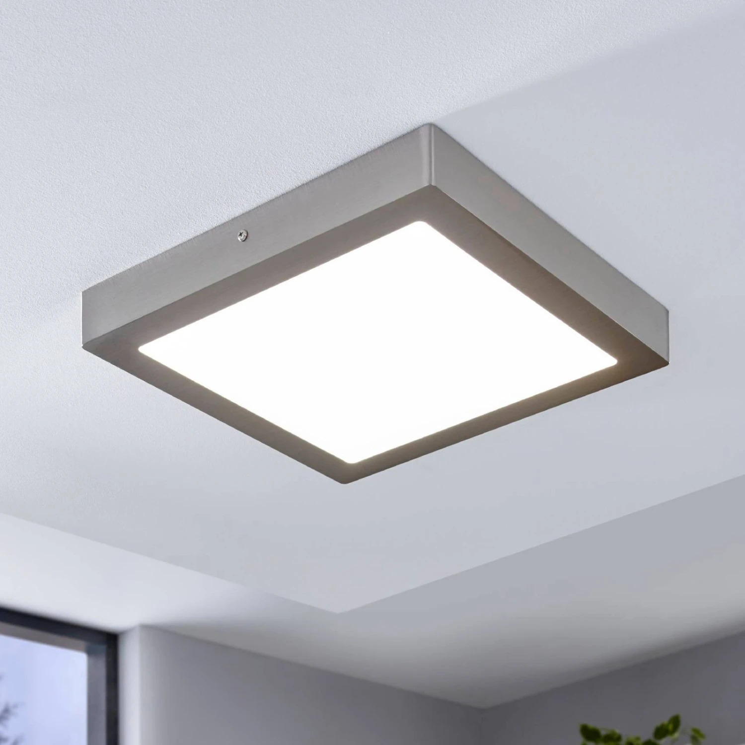 Plafonnier LED carré Fueva-Connect, contrôlable via une applicationL’application disponible gratuitement pour Android et IOS permet de contrôler le plafonnier LED Fueva Connect de manière confortable et surtout flexible via un smartphone ou une tablette – même en déplacement.Les possibilités d’éclairage sont quasiment illimitées, car le luminaire peut s’éclairer dans les couleurs de lumière et les scénarios les plus divers, aussi bien via l’application que via une télécommande disponible en accessoire. L’éclairage blanc peut être sélectionné en continu dans une plage allant de la lumière blanche chaude de 2 700 K à la lumière du jour de 6 500 K. Il est possible de régler un éclairage coloré parmi plus de 16 millions de couleurs, de faire varier l’intensité en continu dans chaque couleur de lumière sélectionnée, de régler des changements de couleur à différentes vitesses et de créer, de mémoriser et de rappeler des séquences lumineuses personnalisées, ainsi que de nombreuses autres fonctions.Le plafonnier LED carré Fueva Connect est en métal moulé et a été équipé d’un diffuseur satiné en plastique pour une diffusion uniforme de la lumière.