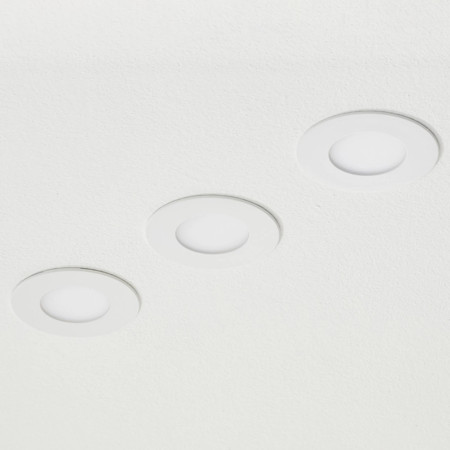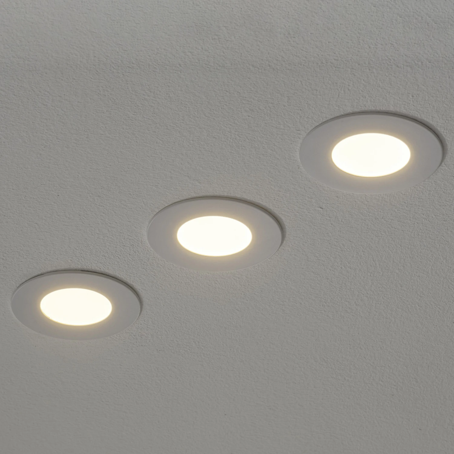 Le spot LED encastré Fueva-C est équipé d’un cadre métallique discret de couleur blanche et est fourni sous forme d’un ensemble pratique de 3. Grâce à leur aspect harmonieux, ils sont presque invisibles sur fond blanc lorsqu’ils sont éteints.