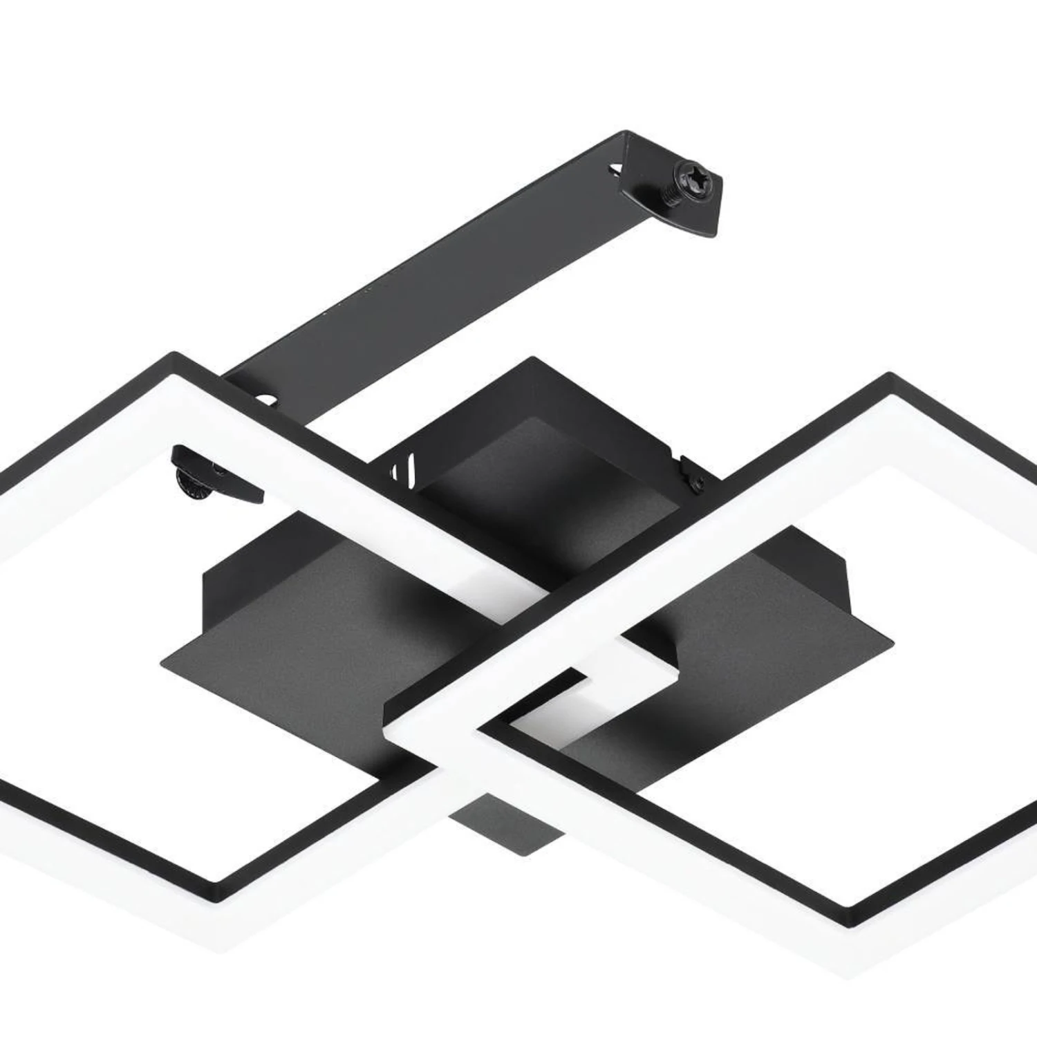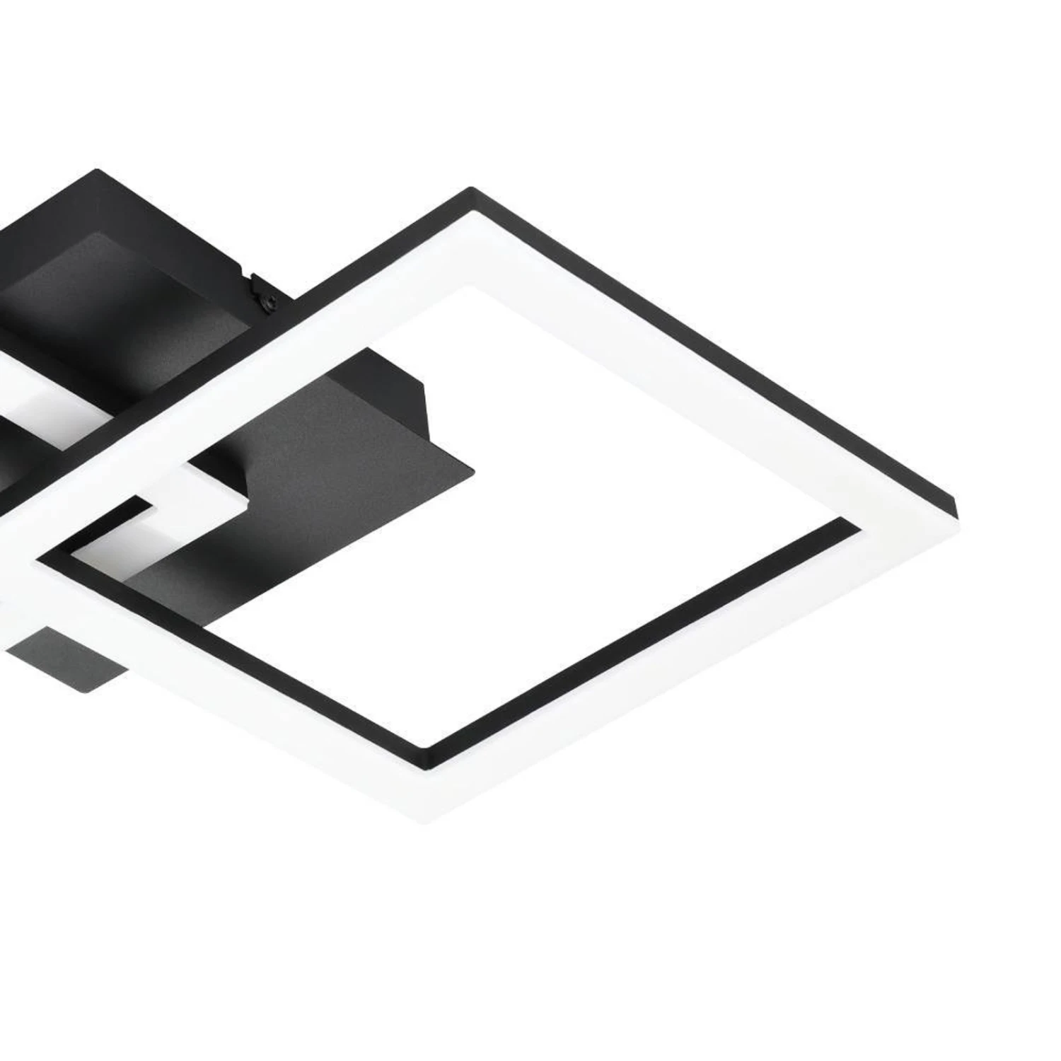 Plafonnier LED Paranday-Z carré et intelligent de la gamme EGLO connectDeux éléments d’éclairage carrés constituent les sources lumineuses de ce plafonnier moderne. Ils sont réglables, ce qui permet d’influencer la direction de la lumière. Les LED sont placées derrière des caches en plastique blanc et contrastent directement avec la sobriété de la structure métallique noire. En les intégrant dans un système basé sur ZigBee 3.0 et en les apprenant via l’application AwoX HomeControl, il est possible d’accéder à de nouvelles fonctions. La couleur de la lumière peut être choisie parmi de nombreuses nuances de blanc et la gradation en continu est également un jeu d’enfant. De plus, il est possible de créer des programmes horaires ou des groupes et de créer des scènes individuelles. Un contrôle sans connexion Internet est possible grâce à la télécommande disponible séparément.Fonctions / Compatibilité:- contrôlable avec l’application gratuite AwoX HomeControl- compatible avec les systèmes smart home d’autres fabricants qui utilisent ZigBee 3.0- connexion directe possible avec Amazon Echo et Google Home- portée accrue grâce à un maillage Bluetooth supplémentaire- jusqu’à 50 luminaires ou ampoules contrôlables simultanément- compatible avec tous les articles de la série EGLO connect-c Bluetooth- contrôlable avec la télécommande adaptée même sans accès à Internet (voir accessoires)