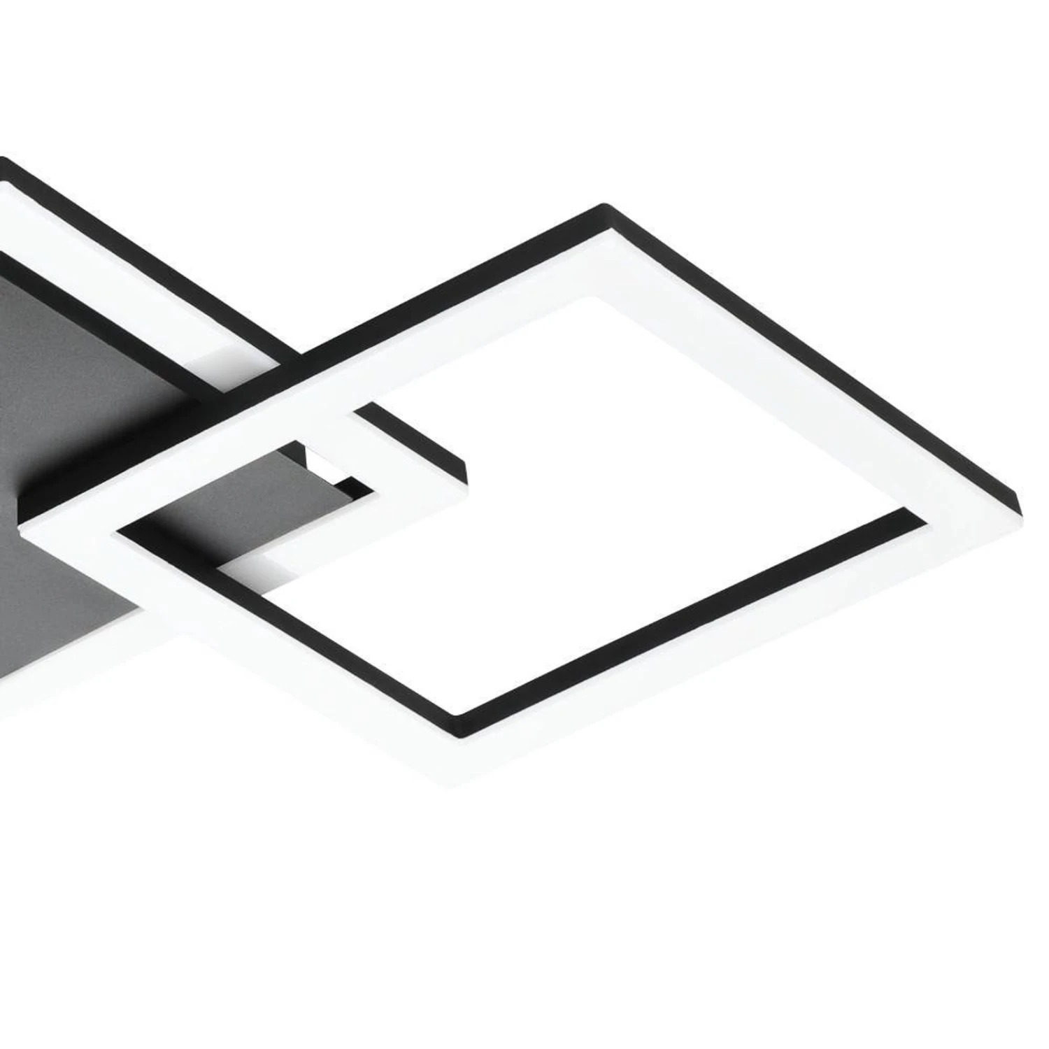 Le plafonnier LED Paranday-Z, composé de trois éléments lumineux, peut être commandé de manière intelligente et orienté de manière flexible – ce sont les caractéristiques du plafonnier LED Paranday-Z de la série EGLO connect. Ses deux éléments lumineux extérieurs carrés sont réglables, celui du milieu est monté de manière fixe sur le baldaquin. La lumière est diffusée uniformément vers le bas par le cadre sur lequel les LED sont installées sous des caches en plastique.Paranday-Z peut être commandé en l’intégrant dans un système Smart Home basé sur ZigBee 3.0. L’application gratuite AwoX HomeControl permet d’effectuer facilement des réglages. Outre la formation de groupes, il est possible de créer des programmes horaires ou de simuler des présences. Le réglage de la luminosité et de la couleur de la lumière est facile à réaliser et crée une ambiance lumineuse agréable et adaptée à tout moment.Fonctions / Compatibilité:- contrôlable avec l’application gratuite AwoX HomeControl- compatible avec les systèmes Smart-Home d’autres fabricants qui utilisent ZigBee 3.0- connexion directe avec Amazon Echo et Google Home possible- portée accrue grâce à un maillage Bluetooth supplémentaire- jusqu’à 50 luminaires ou ampoules contrôlables simultanément- compatible avec tous les articles de la série EGLO connect-c Bluetooth- contrôlable avec une télécommande adaptée même sans accès à Internet (voir accessoires)