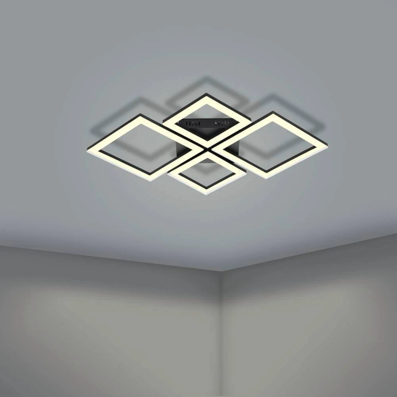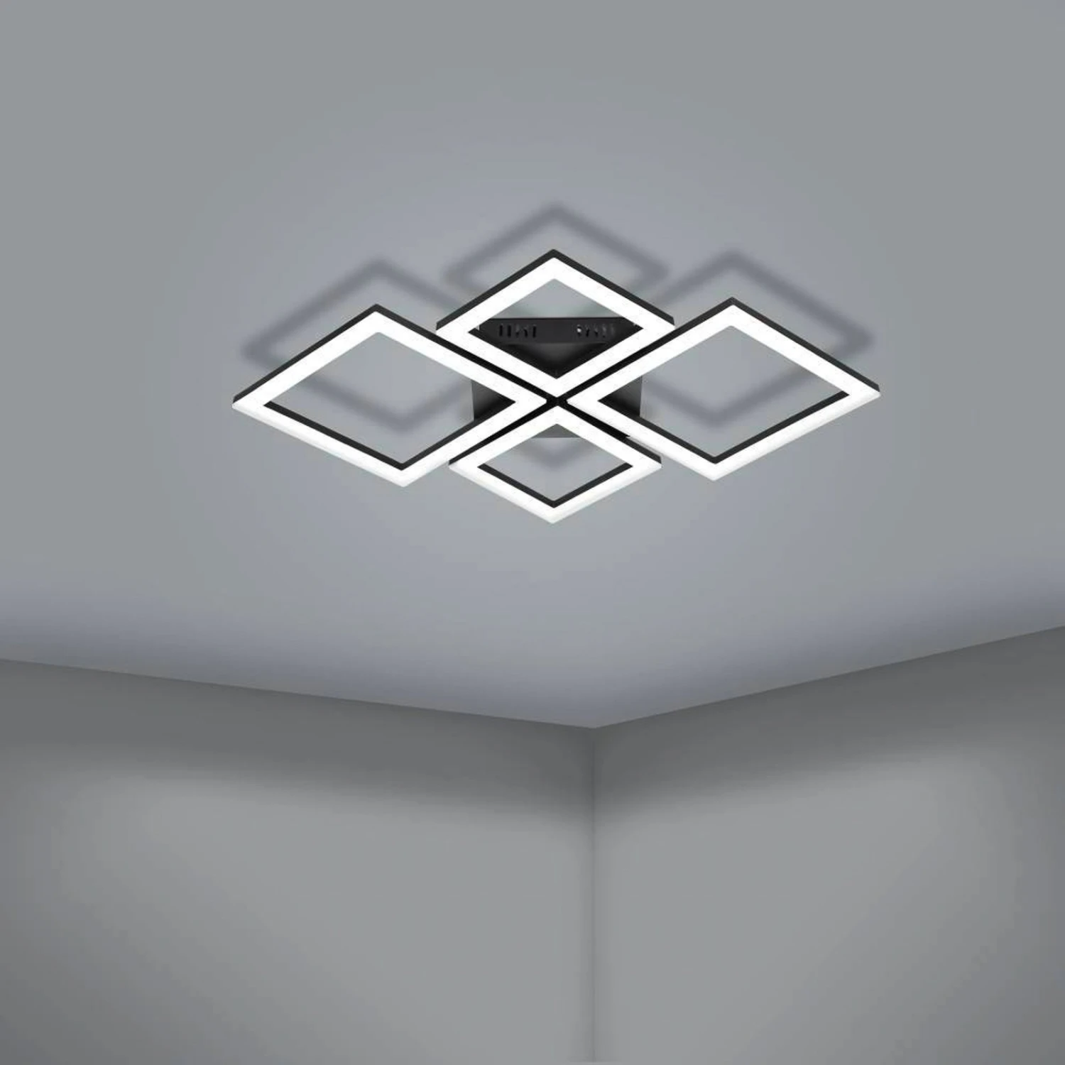 Plafonnier LED Paranday-Z à quatre flammes avec technologie Zigbee 3.0Le plafonnier Paranday-Z est composé de quatre éléments d’éclairage carrés de tailles différentes, ce qui lui confère un aspect attrayant.Les carrés disposés les uns à côté des autres forment chacun un cadre dans lequel sont intégrées les LED sous des caches en plastique blanc. Celles-ci diffusent une lumière homogène qui peut être réglée de différentes manières en l’intégrant dans un système Smart Home basé sur ZigBee 3.0. L’application gratuite AwoX HomeControl permet de créer des scénarios d’éclairage, de configurer des horaires et de former des groupes. En outre, on a accès à de nombreuses couleurs de lumière différentes parmi 50.000 nuances de blanc. La gradation devient également un jeu d’enfant. De plus, le luminaire peut également être commandé sans Internet à l’aide d’une télécommande disponible séparément.Fonctions / Compatibilité:- contrôlable avec l’application gratuite AwoX HomeControl App- compatible avec les systèmes smart home d’autres fabricants qui utilisent ZigBee 3.0- connexion directe avec Amazon Echo et Google Home possible- portée accrue grâce à un maillage Bluetooth supplémentaire- jusqu’à 50 luminaires ou ampoules contrôlables simultanément- compatible avec tous les articles de la série EGLO connect-c Bluetooth- contrôlable avec une télécommande adaptée même sans accès à Internet (voir accessoires)