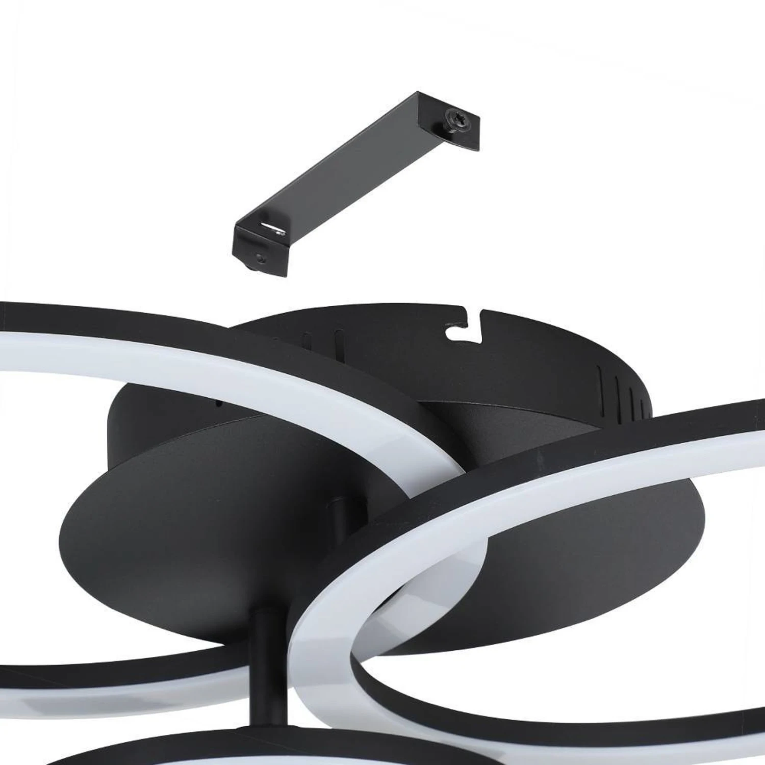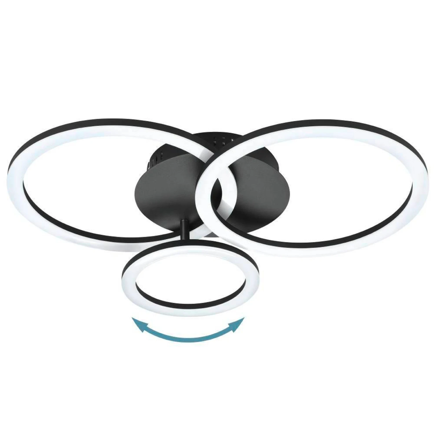 Plafonnier LED pilotable Parrapos-Z composé de trois anneauxTrois anneaux de tailles différentes constituent les sources lumineuses de ce plafonnier. Un cadre en acier noir sert de support, sur lequel sont installées les LED pilotables sous les caches en plastique. Grâce à l’application gratuite AwoX HomeControl, la commande devient un jeu d’enfant : outre le réglage de la couleur de la lumière et de la luminosité, il est possible de former facilement des groupes de plusieurs luminaires, de créer des programmes horaires ou de simuler des présences. Même sans accès à Internet, il est possible de procéder à différents réglages à l’aide d’une télécommande disponible séparément.Fonctions / Compatibilité:- contrôlable avec l’application gratuite AwoX HomeControl App- compatible avec les systèmes smart home d’autres fabricants qui utilisent ZigBee 3.0- connexion directe possible avec Amazon Echo et Google Home- portée accrue grâce à un maillage Bluetooth supplémentaire- jusqu’à 50 luminaires ou ampoules contrôlables simultanément- compatible avec tous les articles de la série EGLO connect-c Bluetooth- contrôlable avec une télécommande adaptée même sans accès à Internet (voir accessoires)