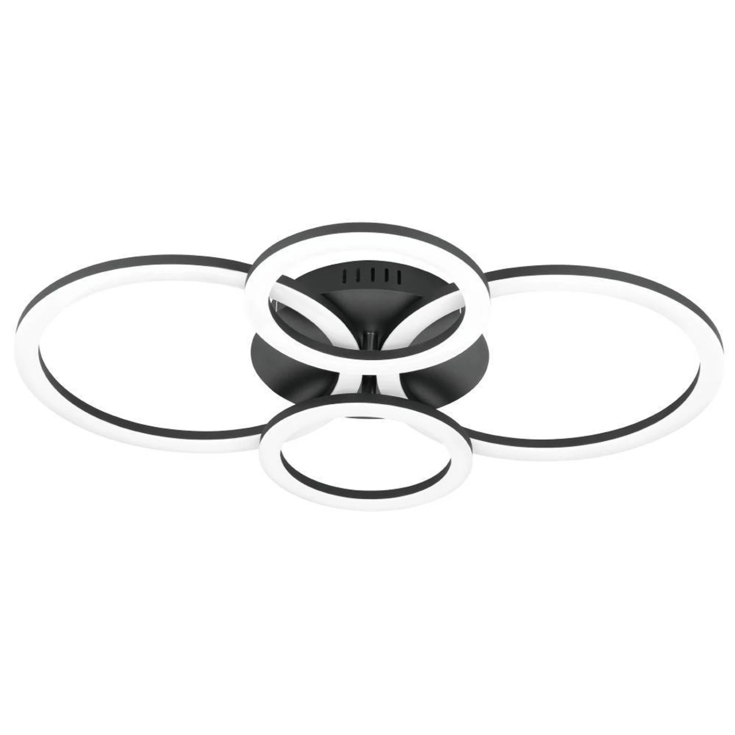 Plafonnier LED Parrapos-Z rond à quatre flammesLe plafonnier LED Parrapos-Z peut être commandé sans effort via l’application gratuite AwoX HomeControl. Il en résulte de nombreuses possibilités de conception de l’éclairage. Les quatre anneaux juxtaposés, en métal noir et dotés de caches en plastique blanc, peuvent briller dans jusqu’à 50.000 nuances de blanc. En outre, l’intensité lumineuse peut être réglée et il est possible de créer différents programmes, groupes ou scènes.Fonctions / Compatibilité:- contrôlable avec l’application gratuite AwoX HomeControl- compatible avec les systèmes smart home d’autres fabricants qui utilisent ZigBee 3.0- connexion directe possible avec Amazon Echo et Google Home- portée accrue grâce à un maillage Bluetooth supplémentaire- jusqu’à 50 luminaires ou ampoules contrôlables simultanément- compatible avec tous les articles de la série EGLO connect-c Bluetooth- contrôlable avec une télécommande adaptée même sans accès à Internet (voir accessoires)