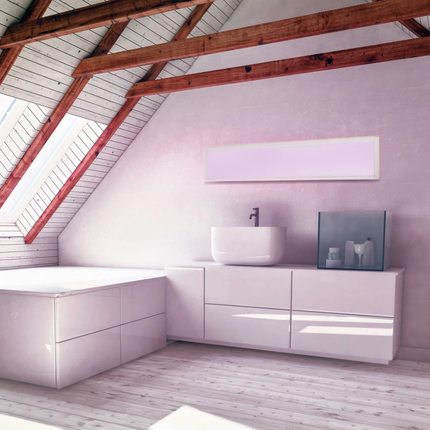 La commande de lumière peut se faire via Bluetooth à l’aide d’une tablette ou d’un smartphone avec l’application disponible pour Android et IOS. Les possibilités de réglage de l’éclairage sont pratiquement infinies. Il est possible de choisir parmi 16 millions de couleurs, de régler l’éclairage blanc en continu de 2 700 K à 6 500 K, de régler l’intensité lumineuse en continu, d’enregistrer et d’activer différents scénarios lumineux, de rassembler plusieurs lampes en groupes et de les commander de manière synchronisée, etc.