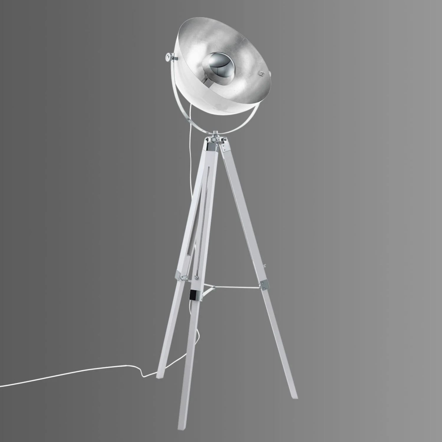 Avec son mélange de matériaux et de couleurs, le lampadaire Covaleda enrichit chaque pièce. Le cadre en bois à trois pattes est fixé par des charnières chromées. L’abat-jour rond de couleur blanche à l’extérieur et argentée à l’intérieur complète idéalement l’aspect moderne du lampadaire. Un couvercle de couleur chrome sert de protection contre l’éblouissement, tandis que la lumière à l’intérieur du luminaire est diffusée de manière optimale par la surface argentée. Ainsi, le lampadaire crée une ambiance agréable.
