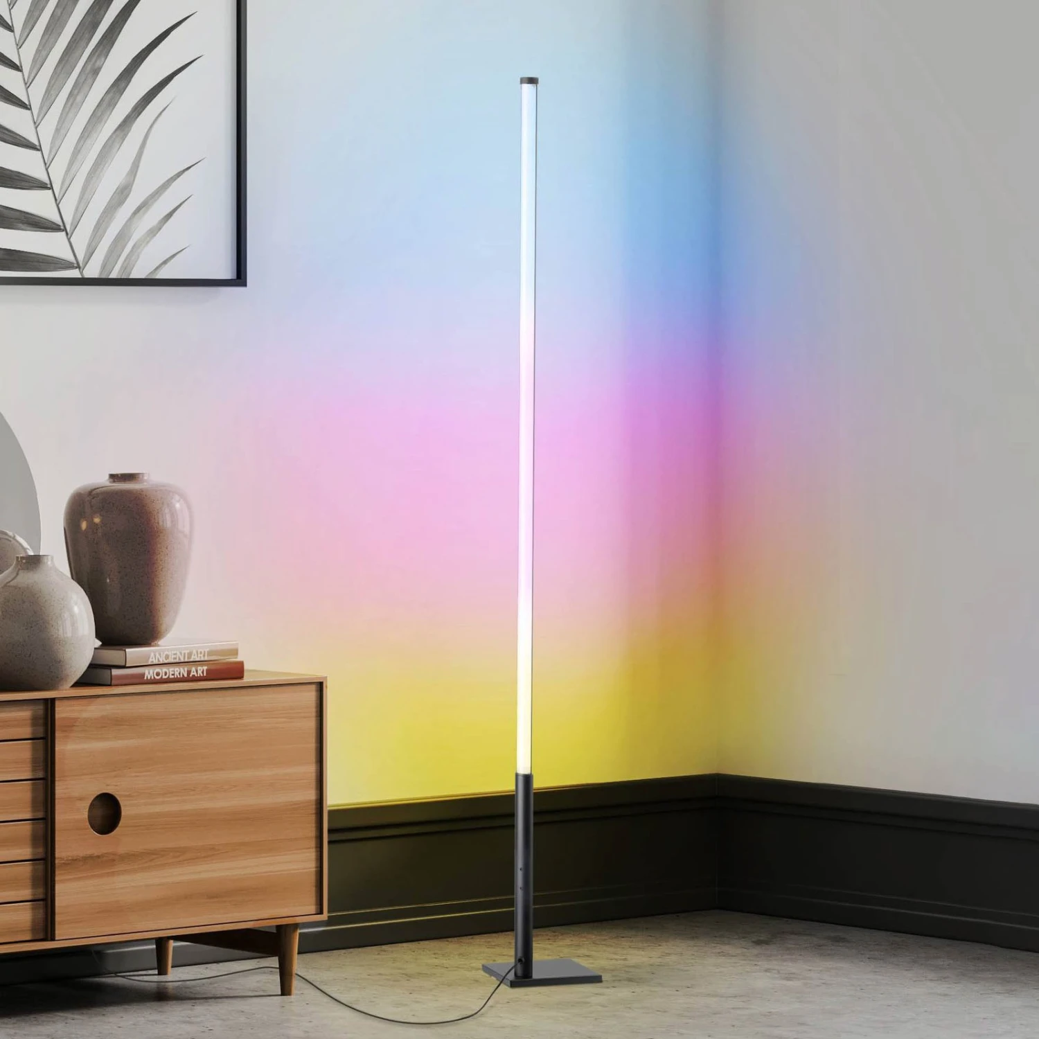 Avec télécommande : Le lampadaire LED polyvalent Picacha 1, CCT, RGBLe pied et le cadre du lampadaire LED polyvalent Picacha 1 sont fabriqués en aluminium et en acier et sont de couleur noire. Son abat-jour blanc est fabriqué en plastique et recouvert à l’arrière par le cadre. Le câble de raccordement intègre un interrupteur à pied qui permet d’allumer et d’éteindre Picacha 1. En outre, la livraison comprend une télécommande qui offre d’autres possibilités. Ainsi, ce lampadaire peut être gradué en continu, la température de couleur peut être réglée (2.700 – 6.500 K) et il est également possible de choisir une lumière colorée grâce à la fonction RGB.Des LED de haute qualité sont intégrées d’origine dans le Picacha 1 et assurent un éclairage varié qui peut toujours être adapté individuellement.caractéristiques techniques:- avec interrupteur au pied pour allumer et éteindre- télécommande incluse- température de couleur réglable en continu du blanc chaud (2.700 K) à la lumière du jour (6.500 K)- fonction RGB : nombreuses couleurs de lumière réglables – intensité variable en continu