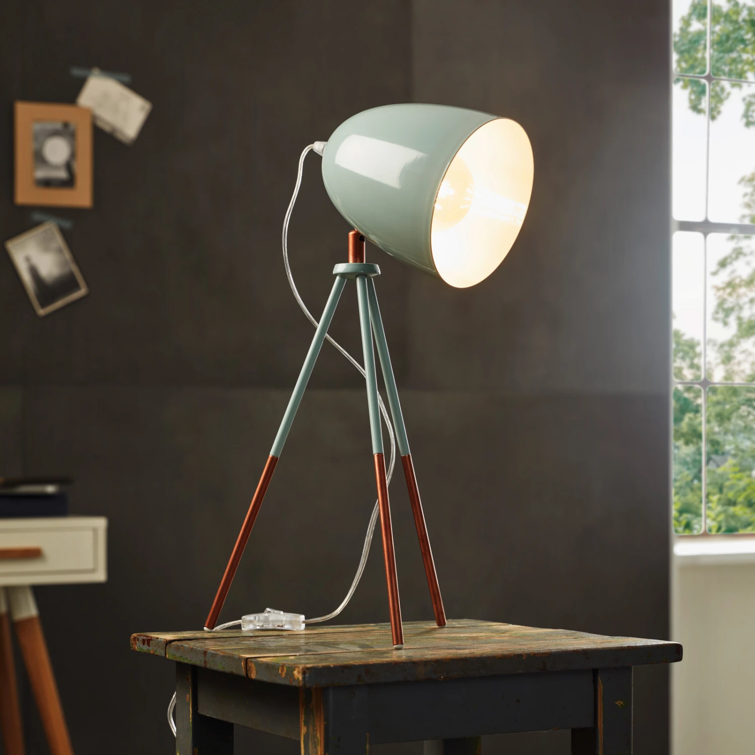 Dundee, une lampe à poser couleur menthe, montée sur un trépied