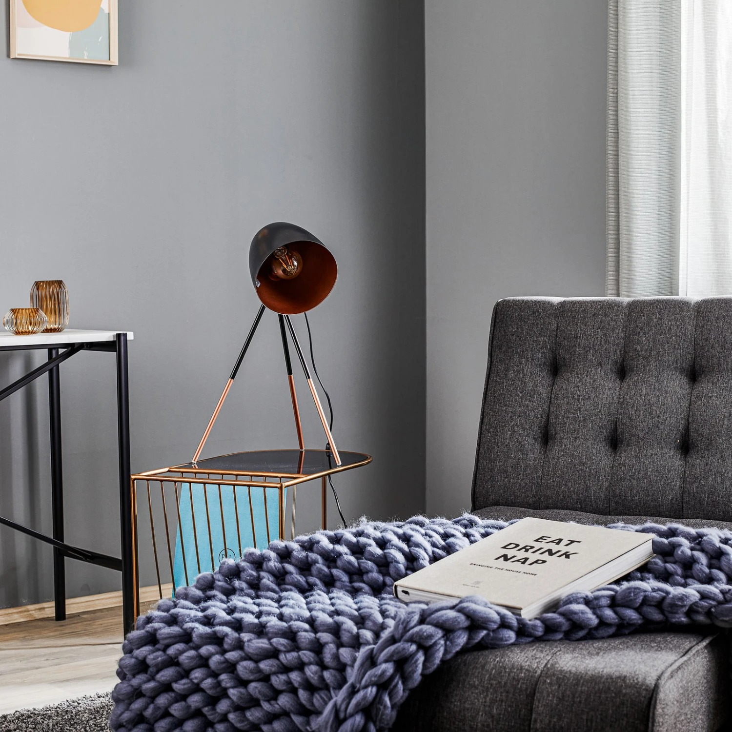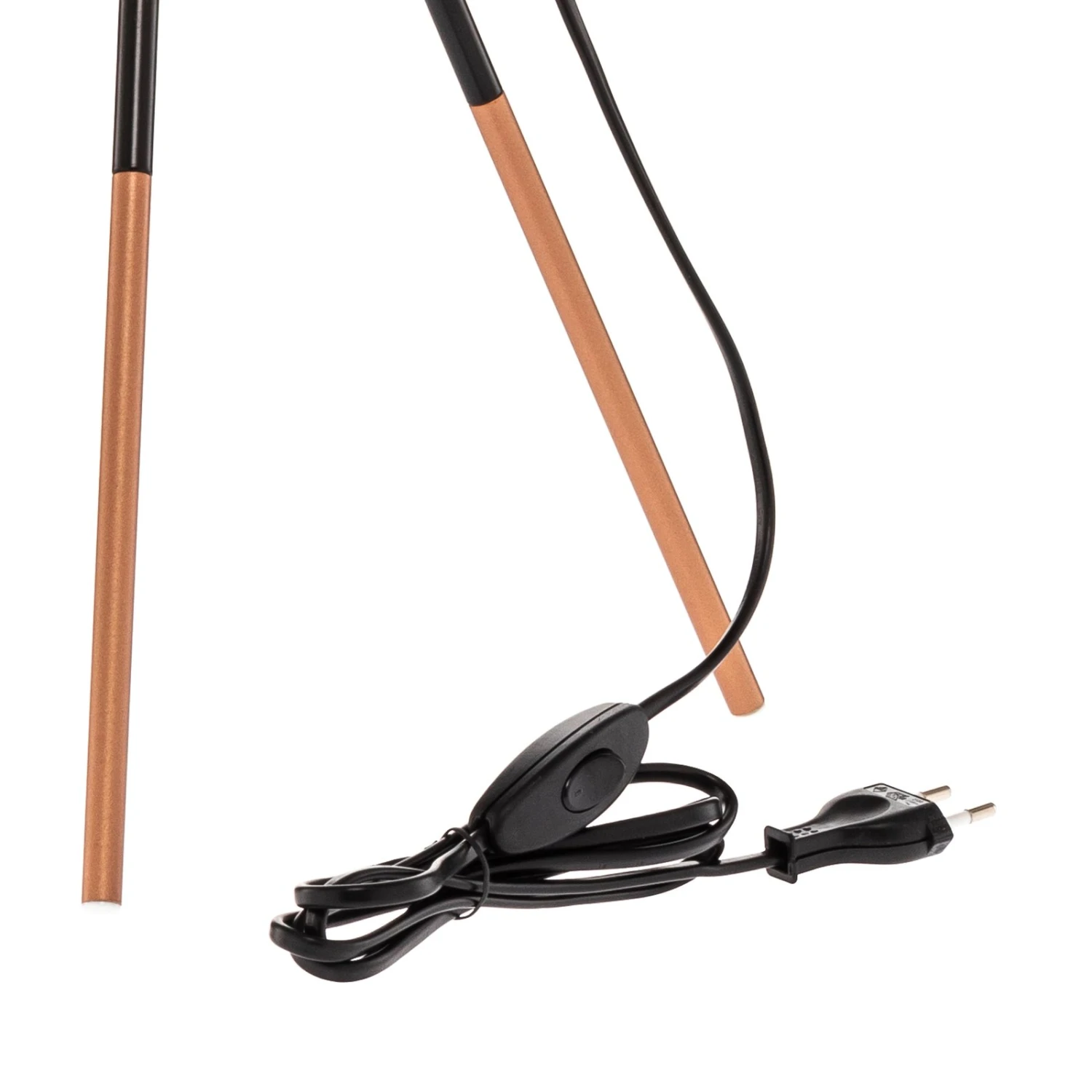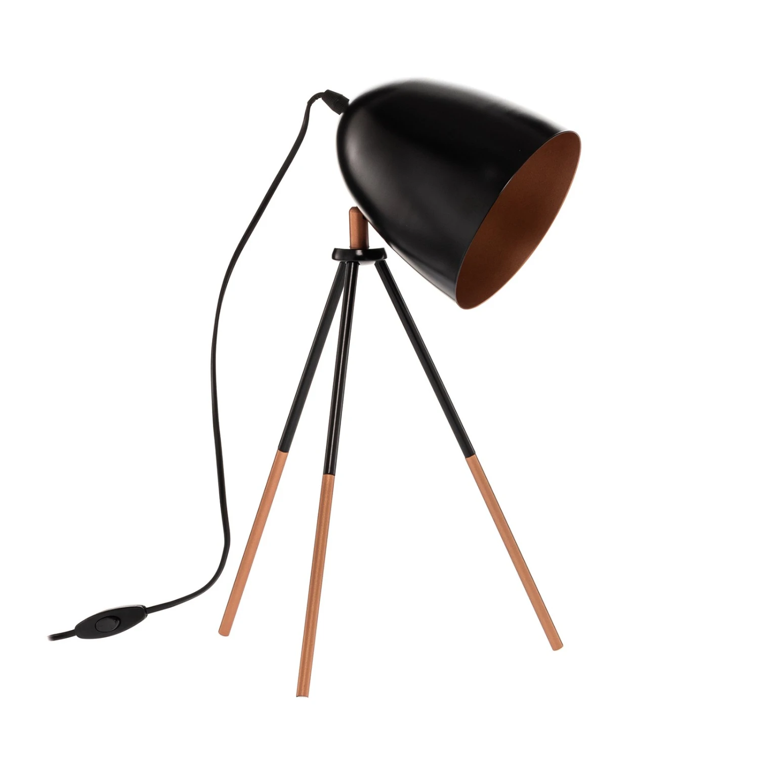 Cette lampe à poser vous séduira avec son design ravissant, mais aussi par la qualité de l’éclairage qu’elle vous offrira. Elle est composée d’un trépied métallique sur lequel est monté un abat-jour métallique dont l’orientation est complètement ajustable. La face extérieure de l’abat-jour métallique ainsi qu’une partie du trépied est en noir, tandis que la face intérieure de l’abat-jour et certains éléments de finition sont laqués dans une couleur cuivre. De manière générale, la lampe à poser offre une image contrastée et moderne qui sera mise en valeur avant tout dans un intérieur moderne. Chester est dotée d’une douille E27, et vous déciderez vous-même du choix de l’ampoule. Vous pourrez choisir toutes sortes de modèles depuis des ampoules traditionnelles incandescentes jusqu’à des ampoules à basse consommation en passant par des ampoules LED. Attention cependant à ne pas dépasser les 60 W.