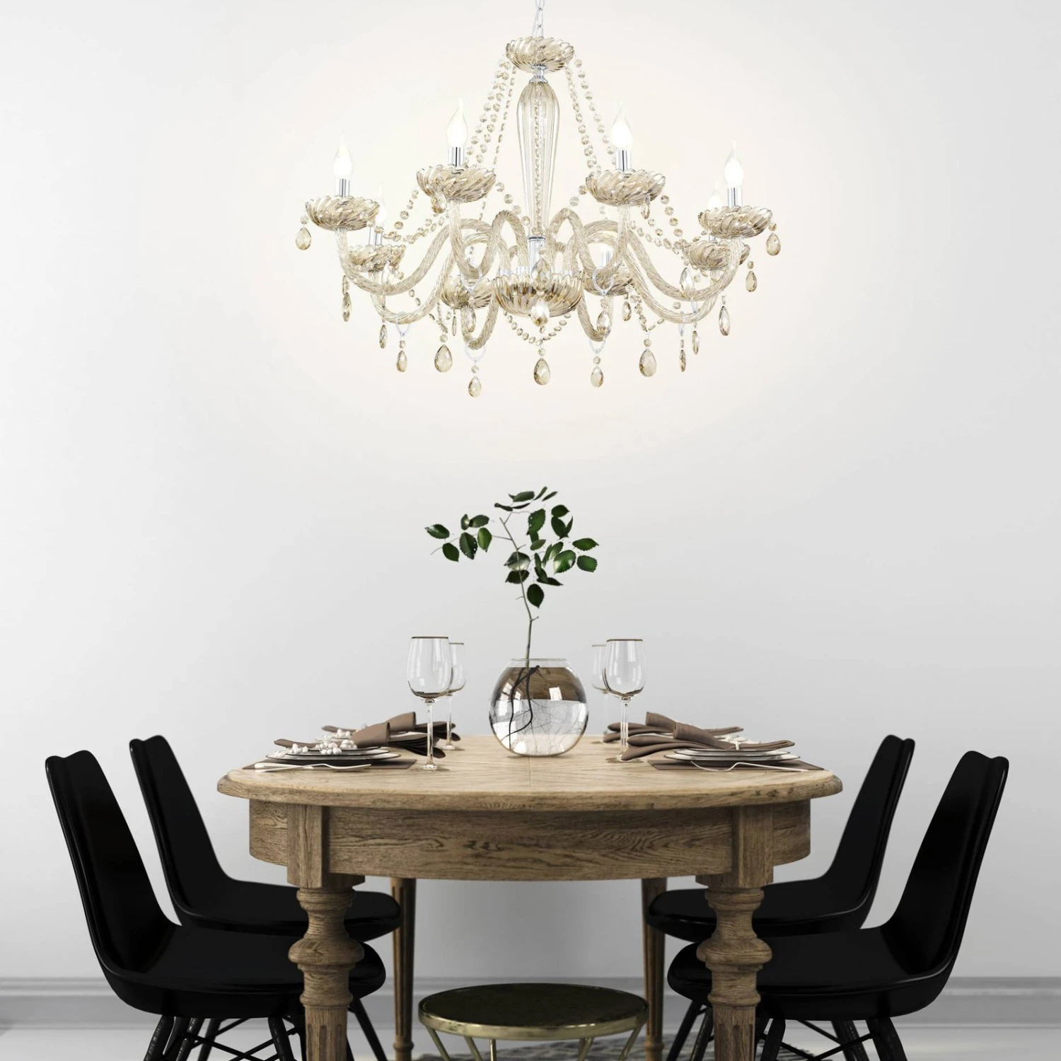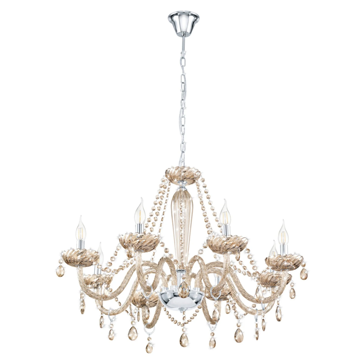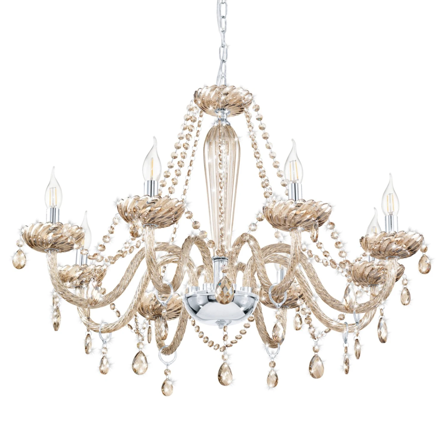 Le lustre Basilano remporte l’enthousiasme grâce à son design élégant, qui se caractérise par huit branches courbes en verre de couleur cognac. Des pierres en verre très aériennes y sont suspendues et donnent un caractère très original à cet aspect d’ensemble. Puis viennent s’ajouter les culots E14 chromé brillant ainsi que le centre de la lampe semi-circulaire chromé lui aussi pour rendre l’apparence globale encore plus brillante.