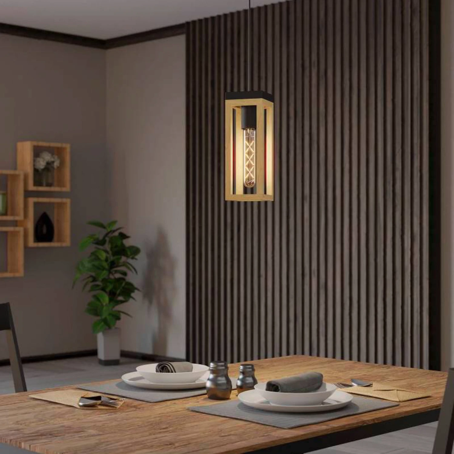 EGLO Nafferton Suspension En Bois, à Une Lampe