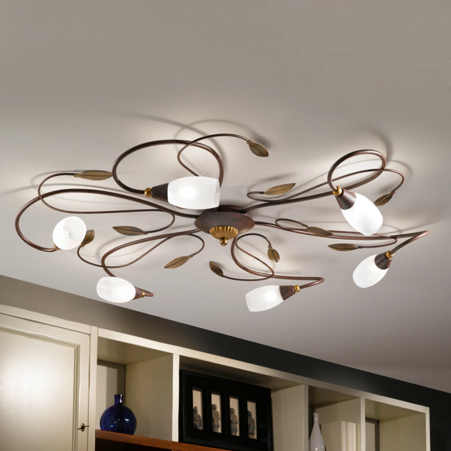 EGLO Plafonnier Gerbera, Brun Ancien/doré, à 6 Lampes