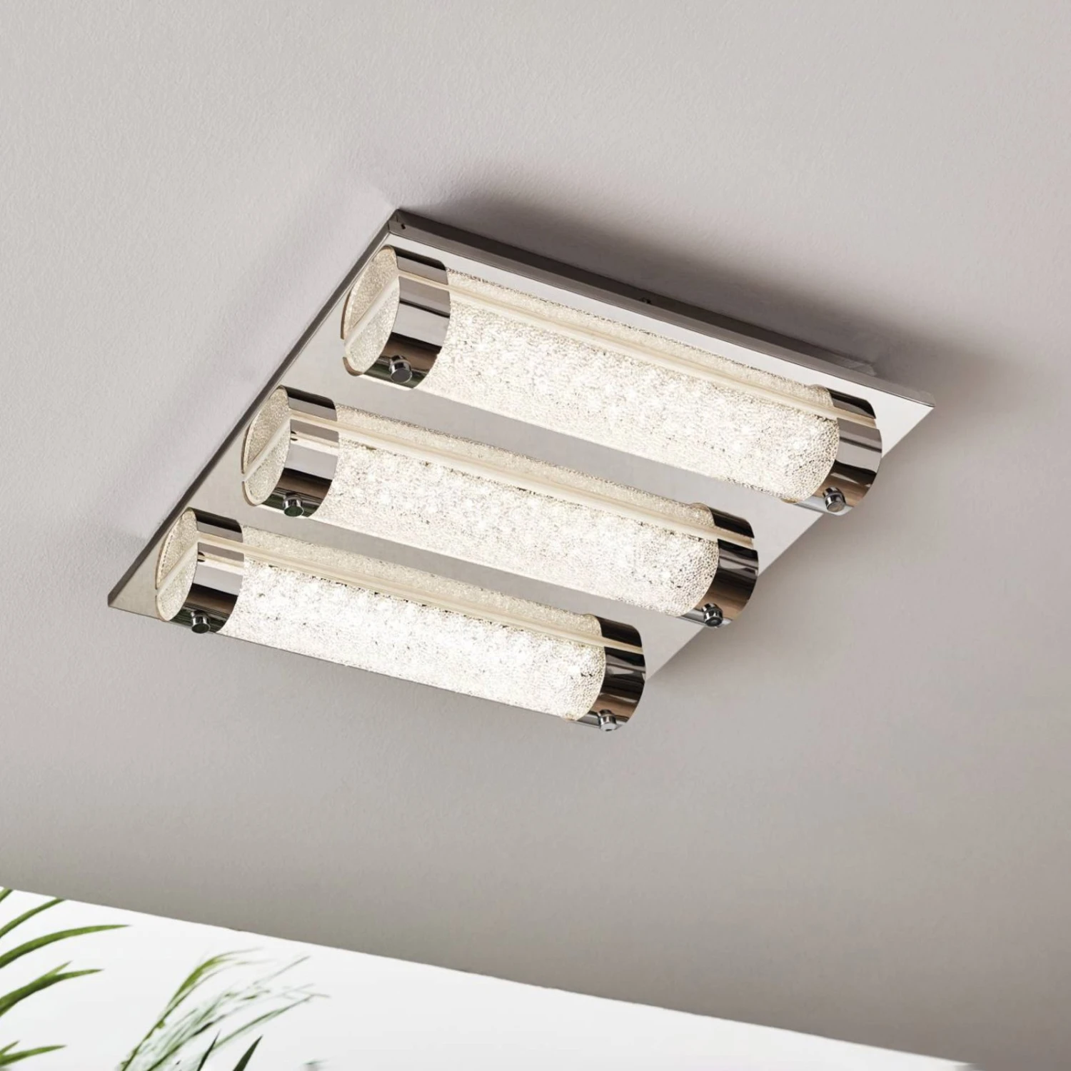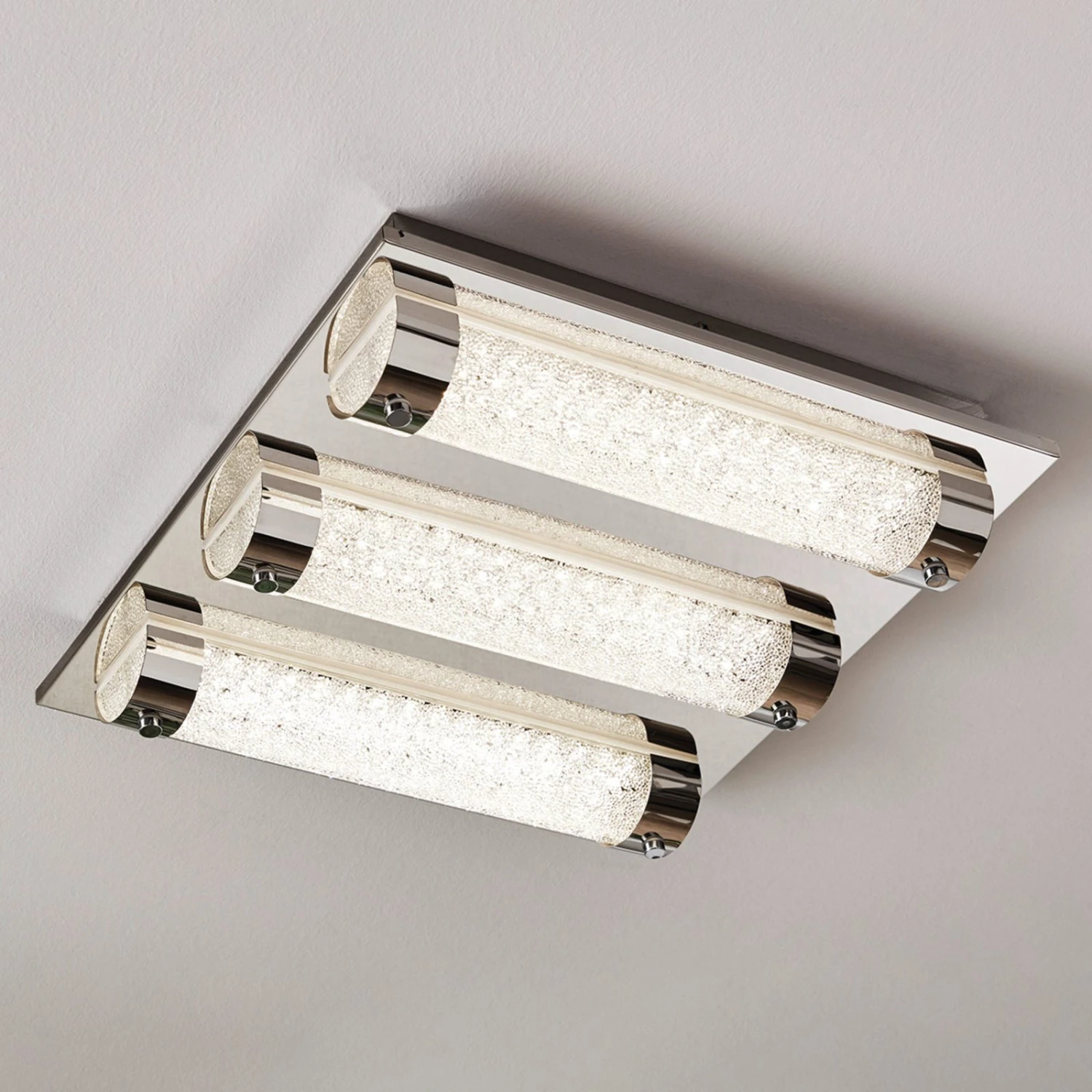 Plafonnier LED carré Tolorico avec trois tubes en verre