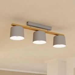 EGLO Plafonnier Mariel 3 Lampes Gris Clair Bois Naturel