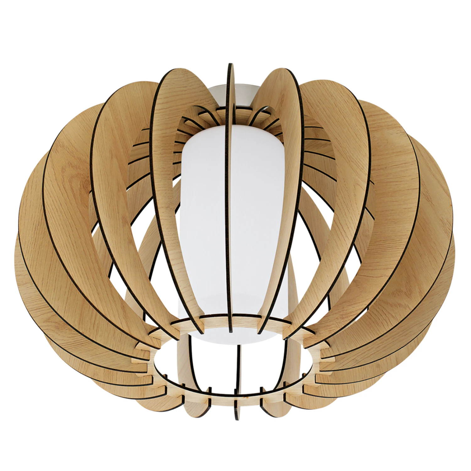 Grâce à ses lamelles de bois naturel, le plafonnier Stellato offre à la pièce un bel éclairage. C’est en effet lié au fait que la lumière passe au travers des différentes lamelles, projetant au passage de très belles ombres sur le plafond. Au centre du plafonnier se trouve un verre satiné de forme cylindrique qui diffuse une lumière non-éblouissante de manière homogène dans la pièce. Vous pourrez choisir toutes sortes d’ampoules de type E27, en veillant cependant à ne pas dépasser les 60 W. Hormis cette restriction, vous pourrez décider vous-même du type d’ampoule que vous souhaiterez insérer dans la douille.