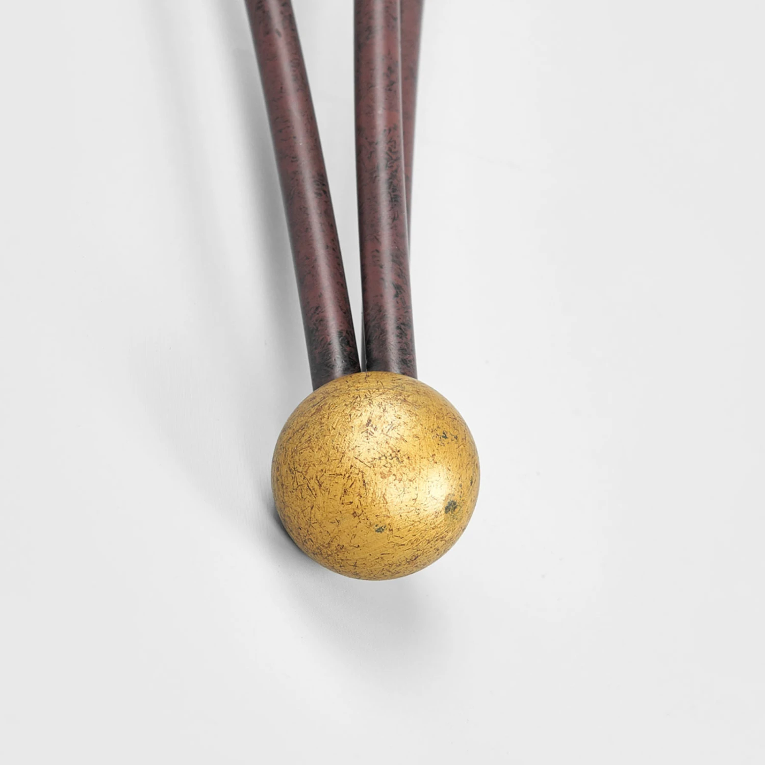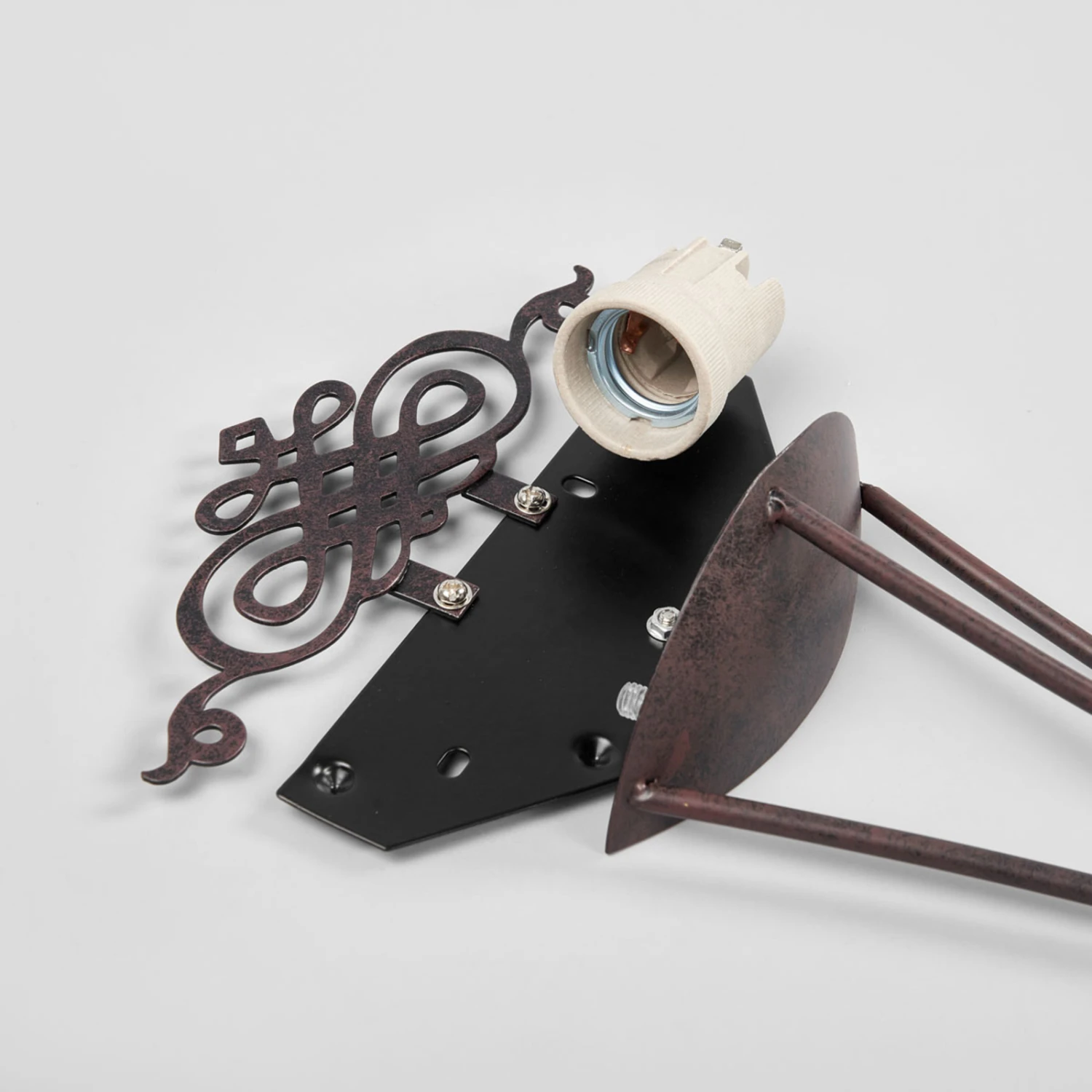 La forme originale de ce luminaire est associée à l’emploi d’éléments métalliques de couleur marron antique qui lui confèrent un aspect rustique. Le verre de couleur blanche utilisé pour cette lampe favorise une lumière agréable, diffusée vers le haut, et dont les effets sont absolument magnifiques. L’élément métallique central, implanté sur le haut du luminaire, contribue à lui donner une touche décorative très appréciable, en particulier lorsque la lampe est allumée.