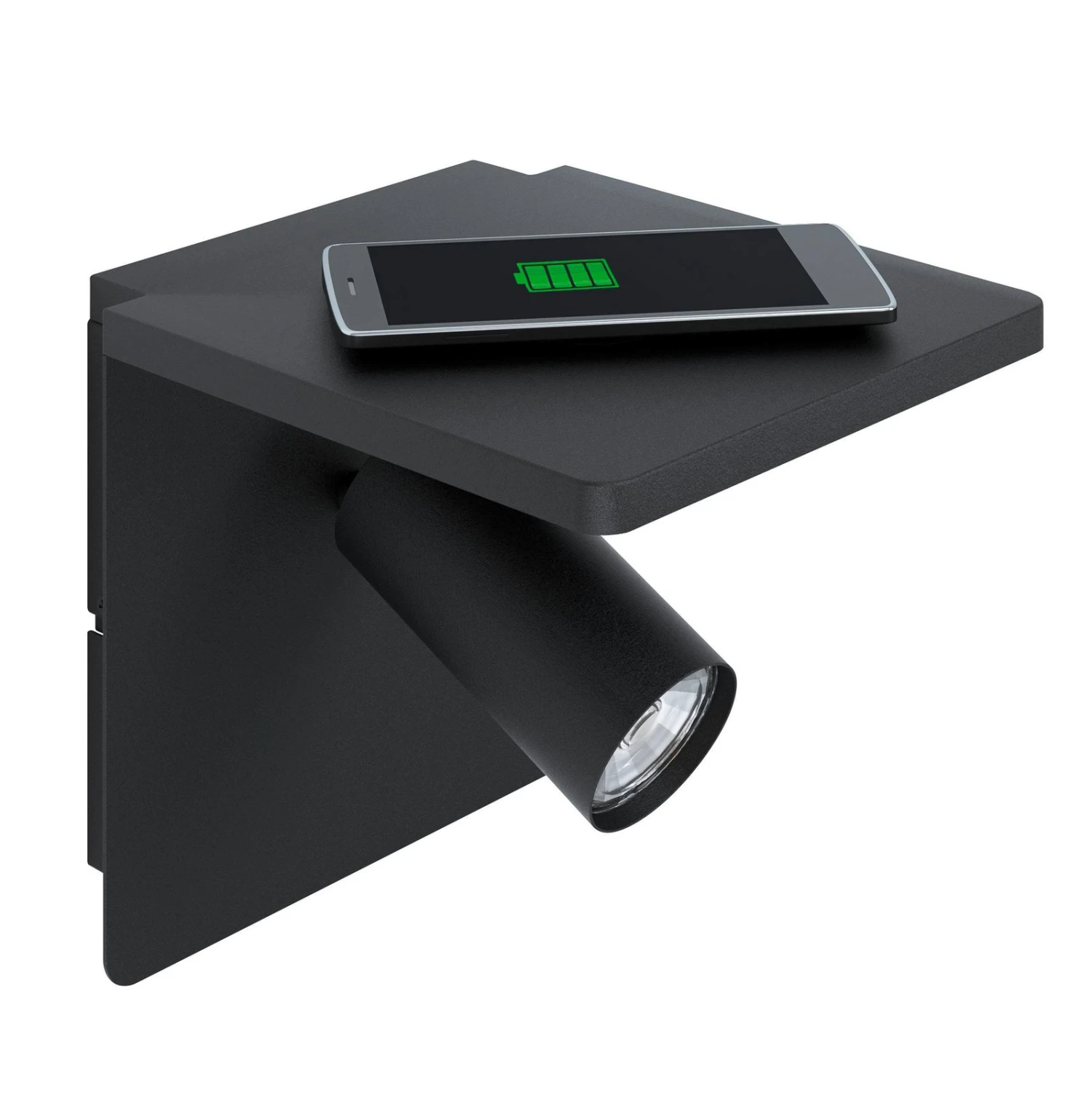 EGLO Spot Mural LED Ciglie Noir, Fonction Chargeur QI