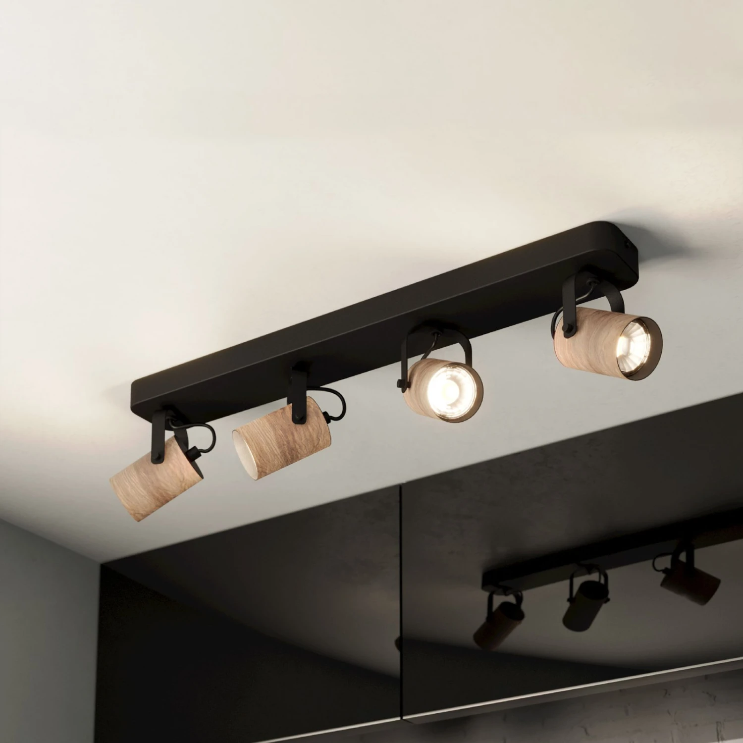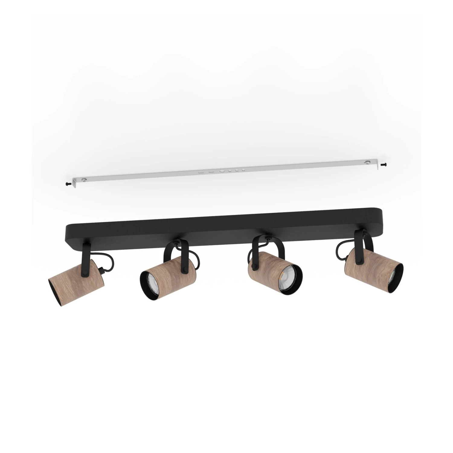 EGLO Spot Plafond Cayuca Noir/décor Bois, Quatre Lampes