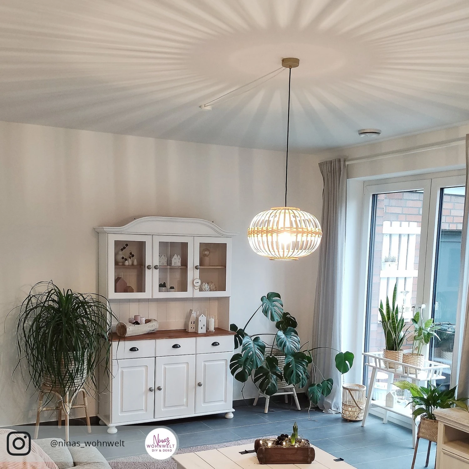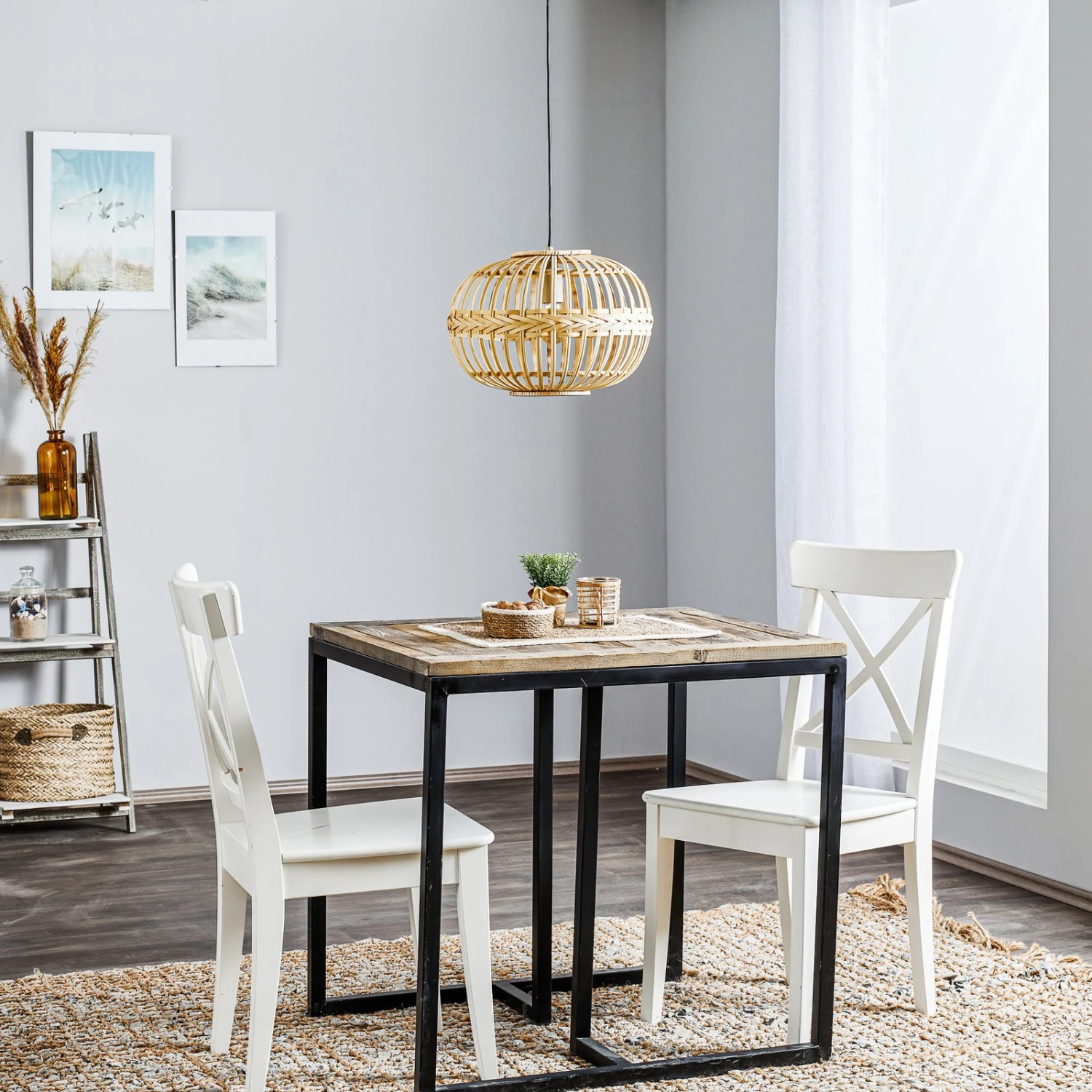 Le luminaire suspendu Amsfield apporte un charme naturel à toute pièce où il est monté pour éclairer une table. L’abat-jour de forme ovale de la lampe est constitué de montants en bambou et d’un anneau de bambou tressé au milieu de l’abat-jour. En raison de la conception ouverte, la majeure partie de la lumière est émise directement dans l’environnement et les montants de l’écran créent des images d’ombre dans la pièce. Comme la lampe est visible à travers l’abat-jour, une variante décorative doit être utilisée. Une sélection de lampes appropriées est stockée sous la rubrique « Sélection de l’illuminant », afin que l’illuminant puisse être commandé directement.