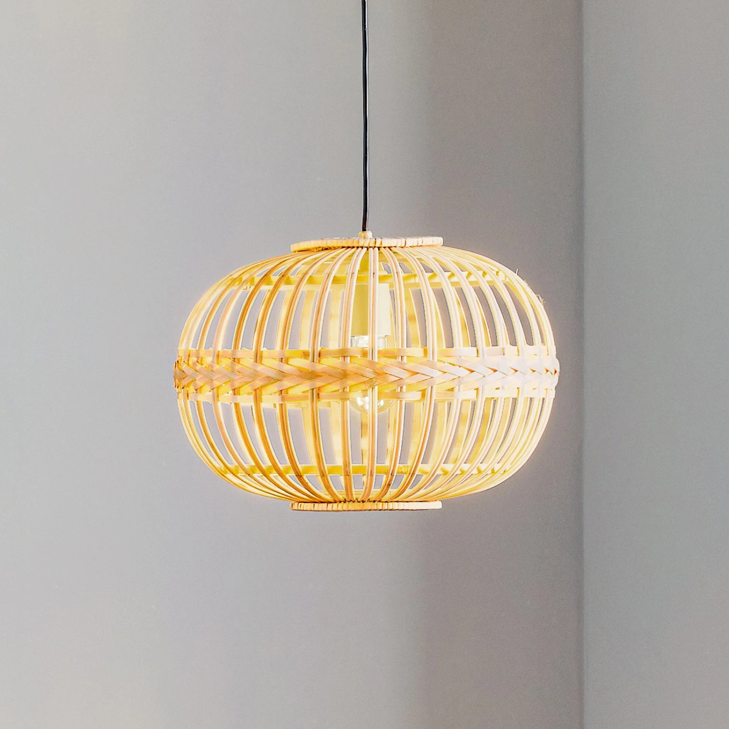 Lampe à suspension Amsfield avec abat-jour ovale en bambou
