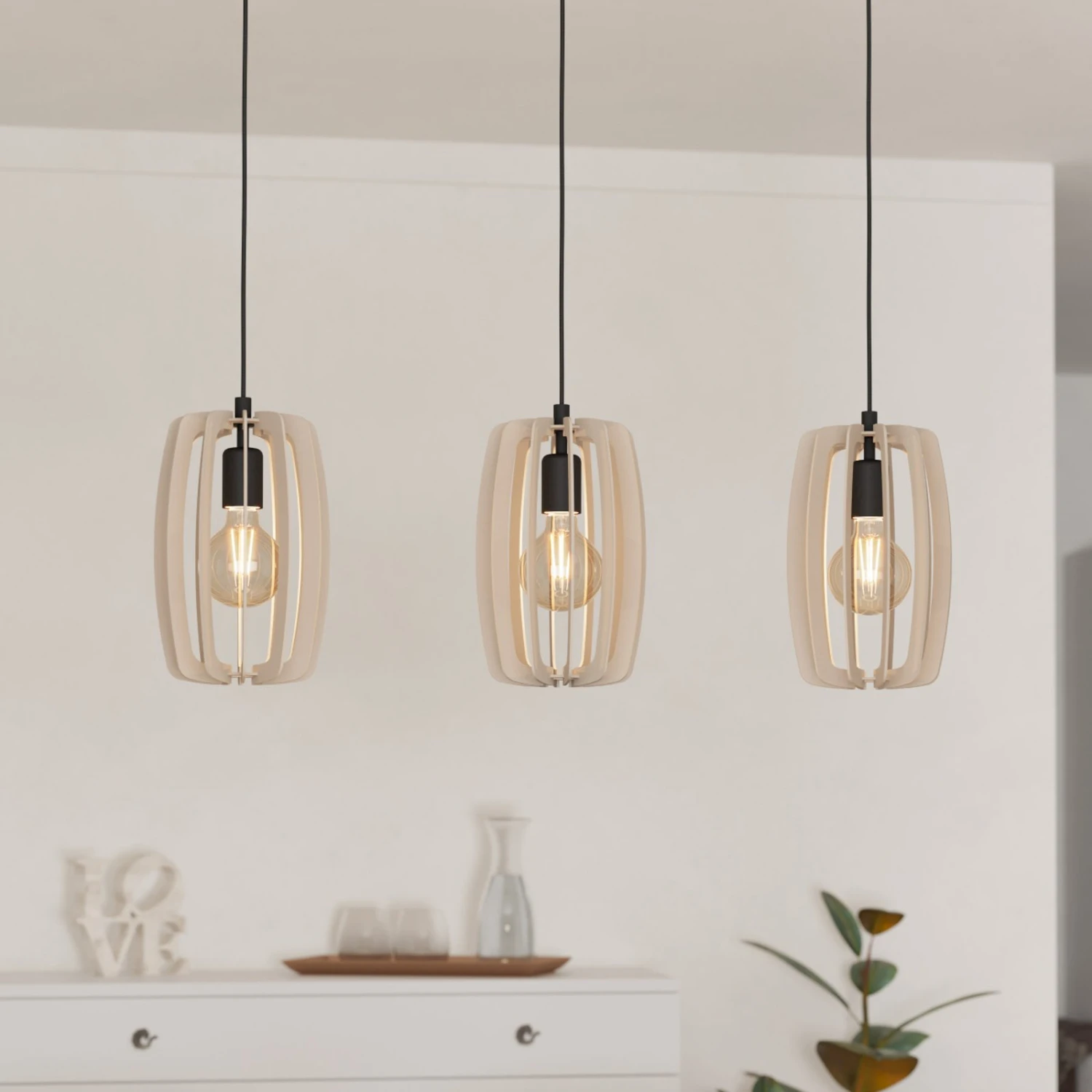 EGLO Suspension Bajazzara, Trois Abat-jour Cages, Sable
