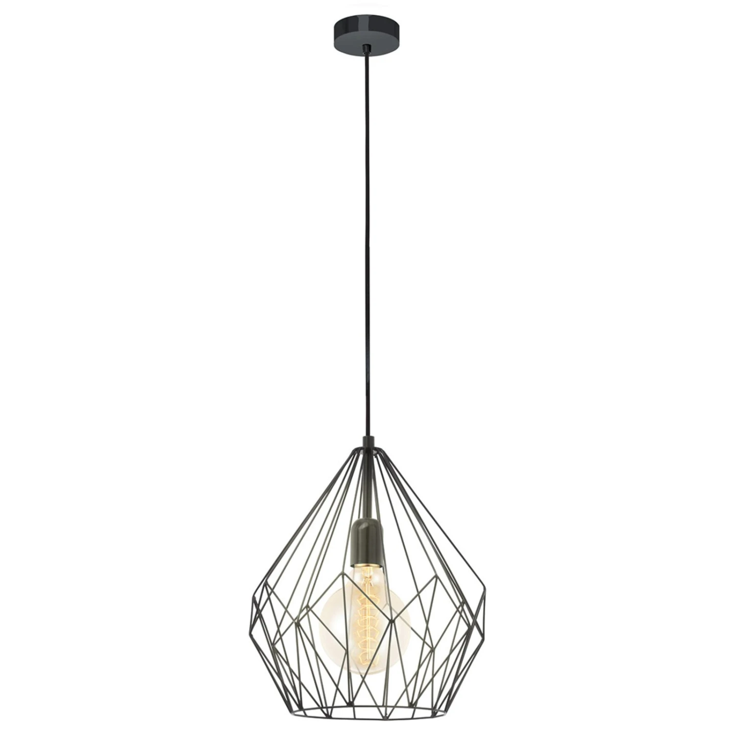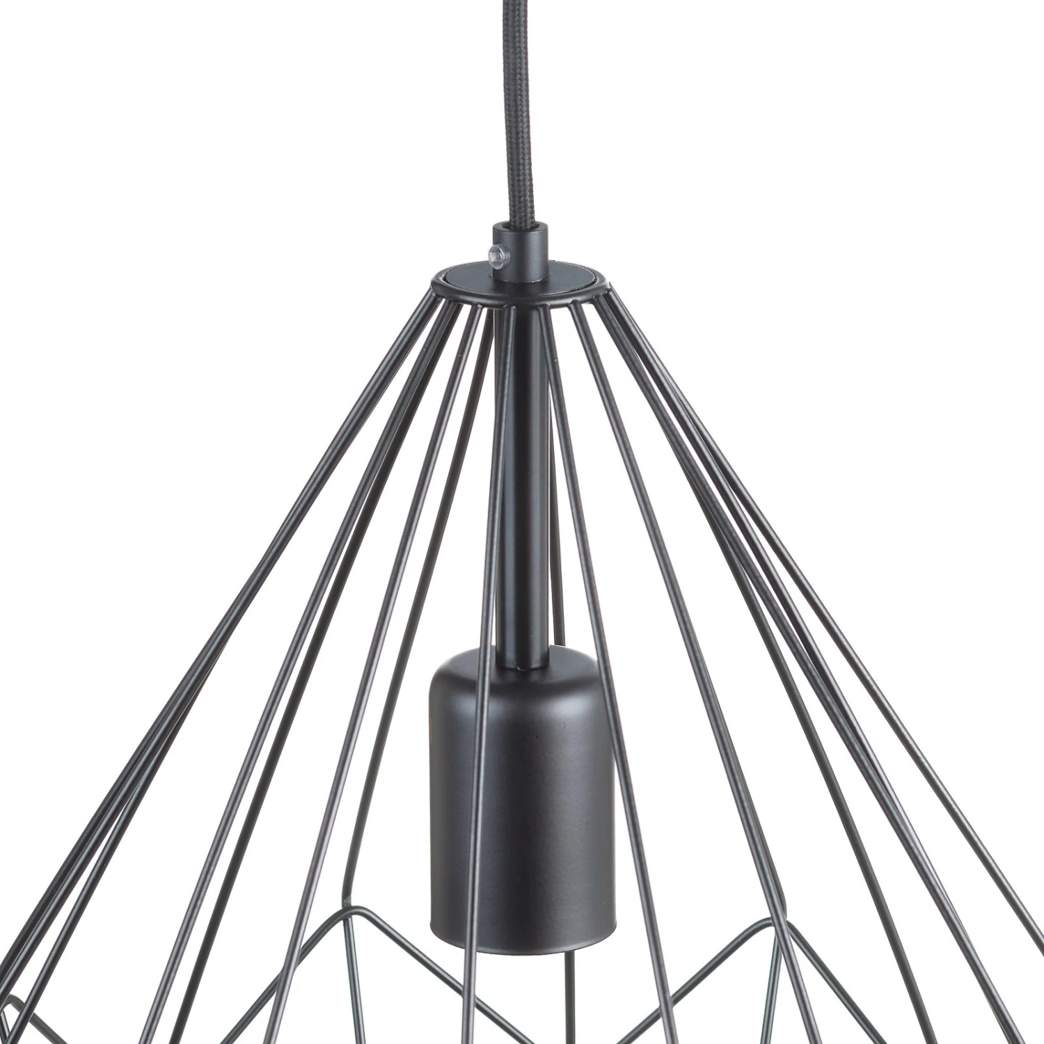 Conçu à partir de tiges d’acier noires de forme ouverte, l’abat-jour de la lampe à suspendre Carlton laisse entrevoir l’ampoule. C’est pourquoi il est recommandé d’utiliser une ampoule décorative dans la douille E27 – par exemple une lampe globe avec un verre transparent ou doré et des LED disposées dans une optique particulière.