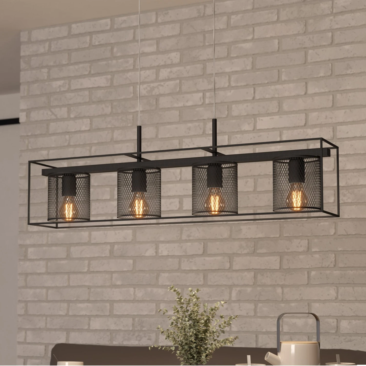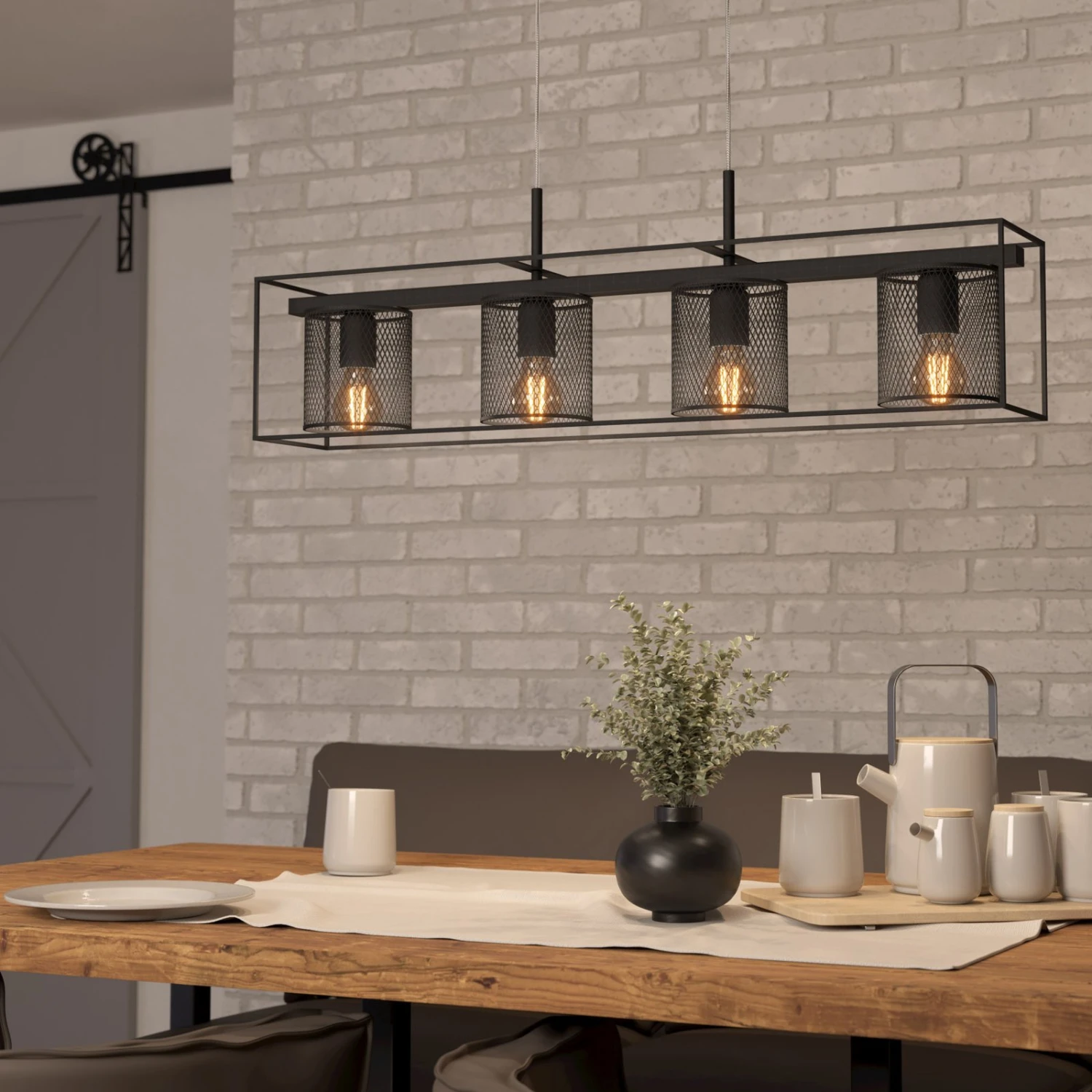 EGLO Suspension Catterick, Noire, Quatre Abat-jour Cage