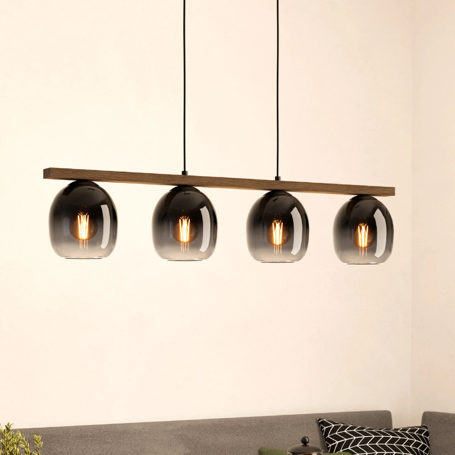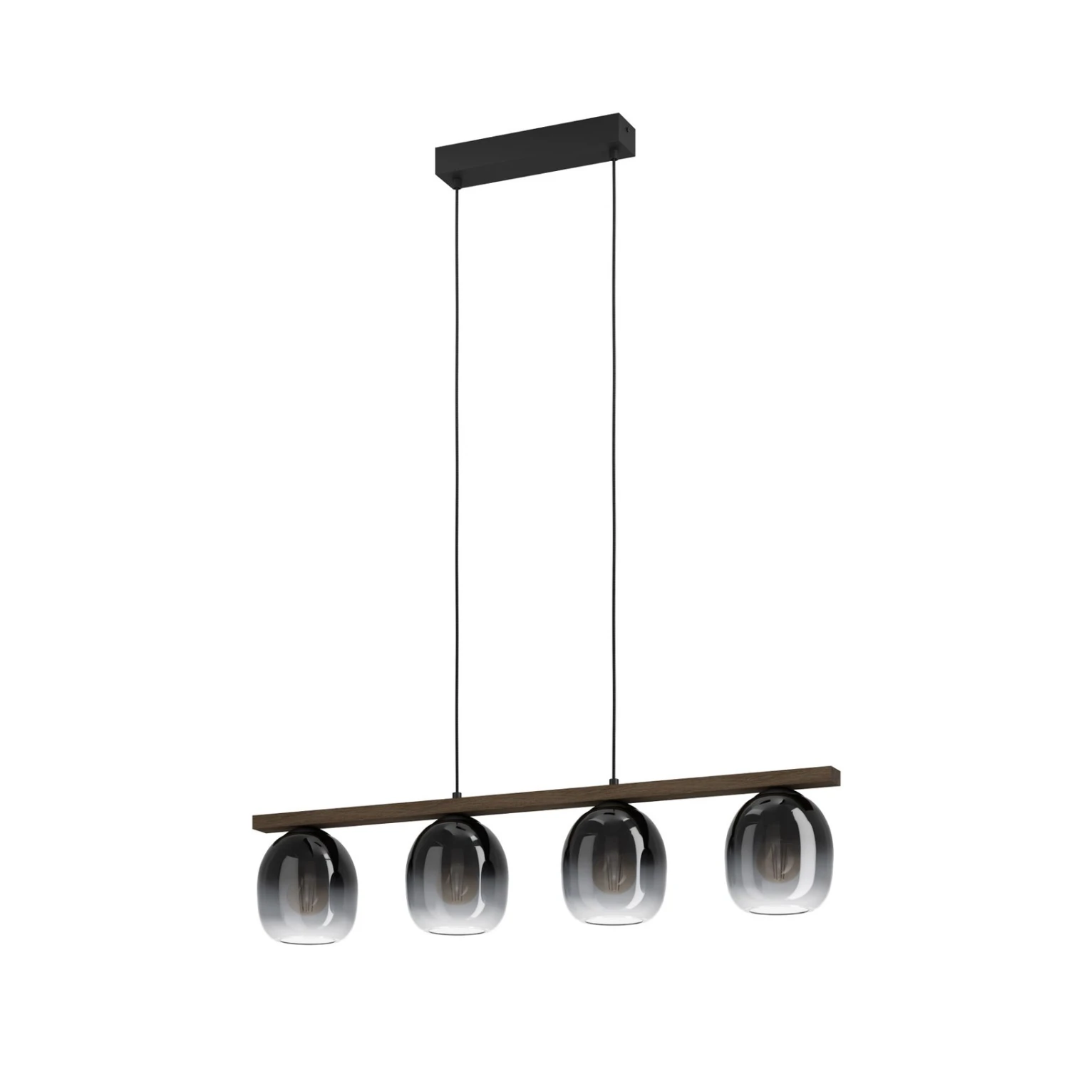 EGLO Suspension Filago, Quatre Abat-jour En Verre Fumé