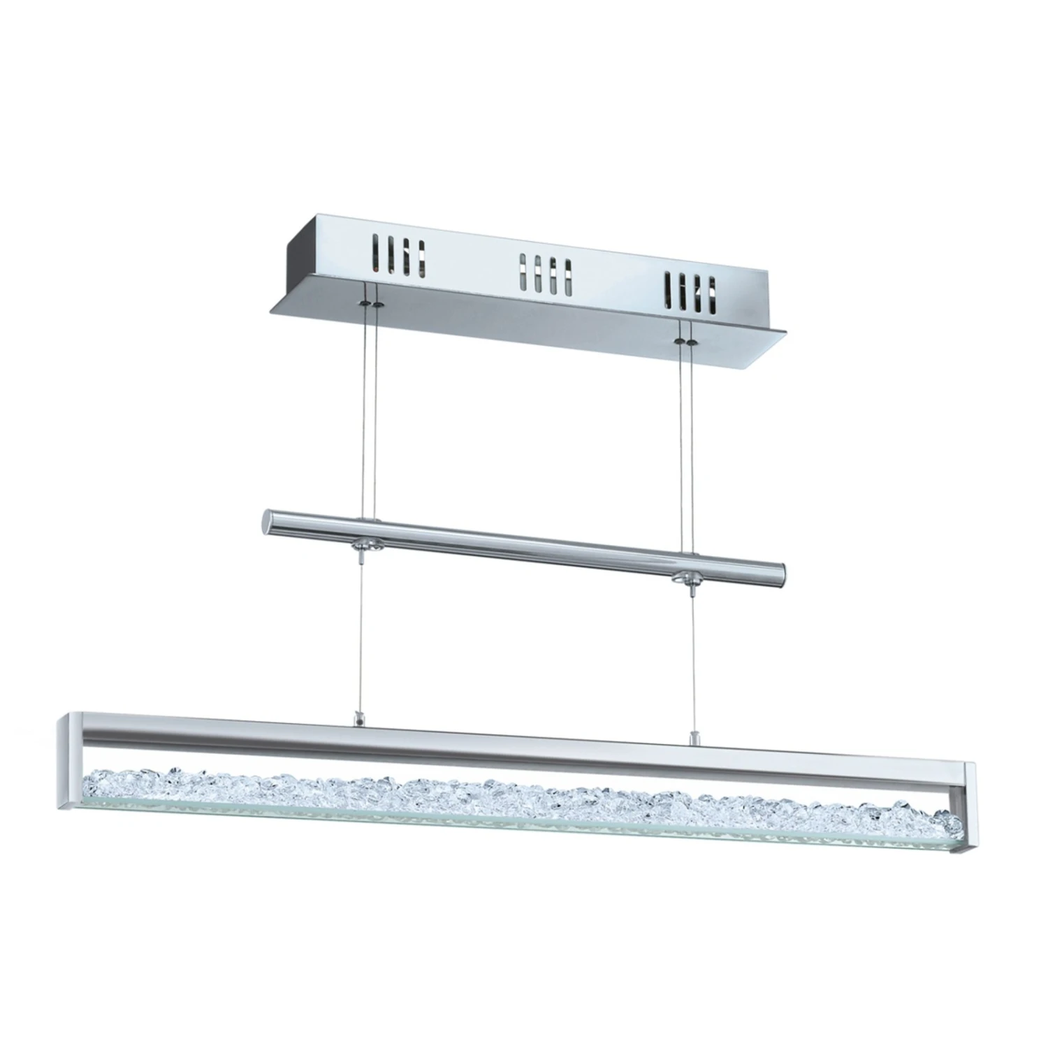 L’interaction entre les différents éléments confère un charme irrésistible à la suspension LED Cardito 1. L’abat-jour allongé en aluminium et en acier est serti d’une rangée de petits cristaux qui diffractent la lumière de mille façons et qui assurent un éclairage dynamique et riche en nuances de la pièce. La fonction tactile permet non seulement d’allumer et d’éteindre la lampe, mais aussi de régler son intensité lumineuse et de changer la température de la lumière entre 2 700 et 5 000 K de manière à toujours profiter de l’éclairage adapté à l’ambiance de la pièce.