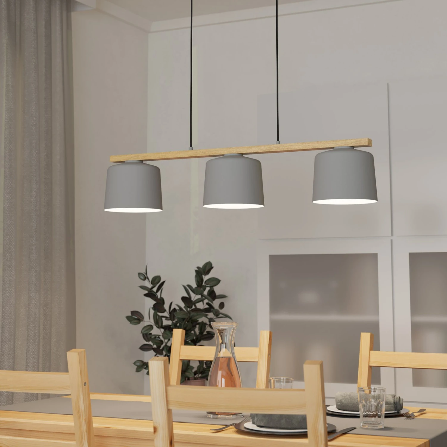 EGLO Suspension Mariel 3 Lampes Gris Clair Bois Naturel