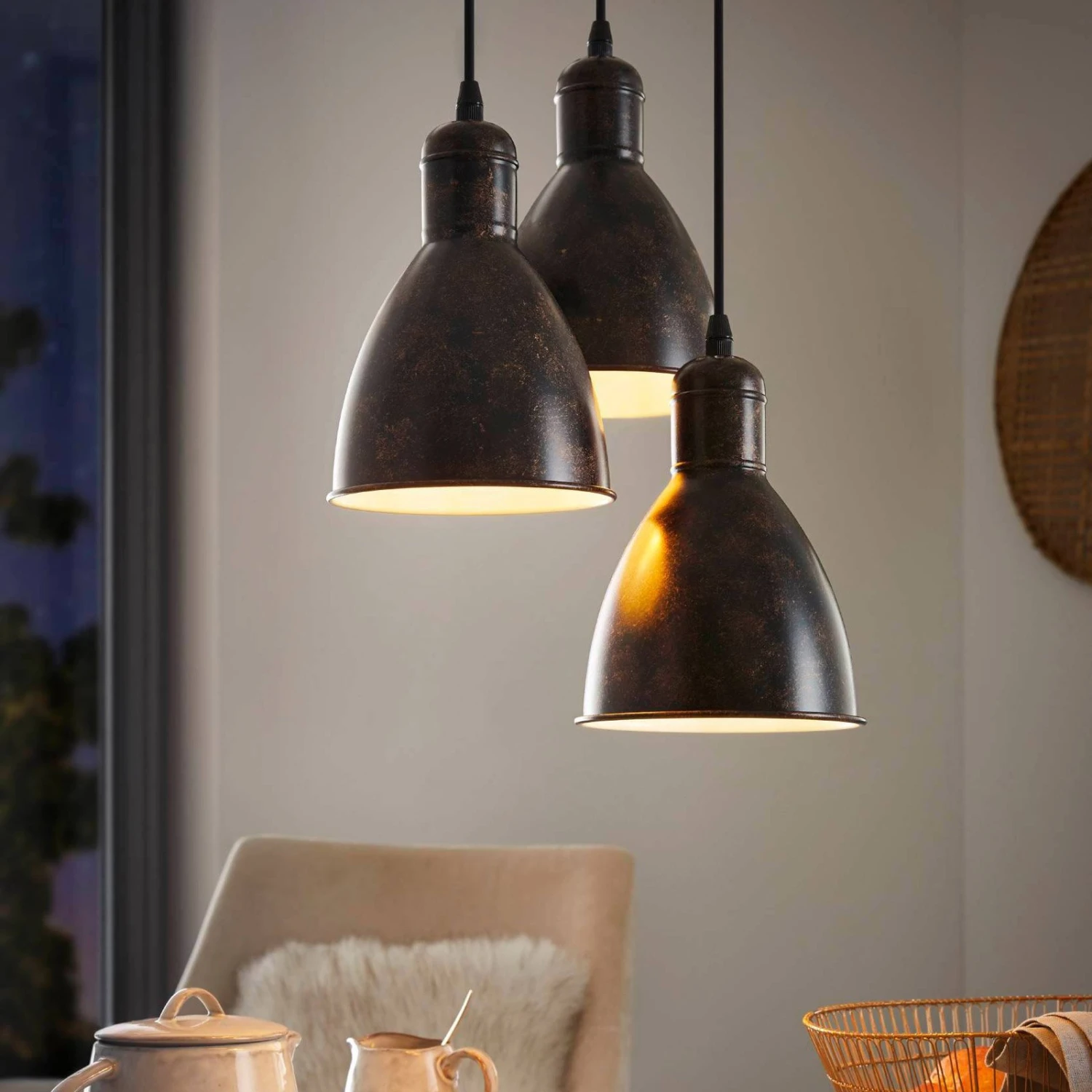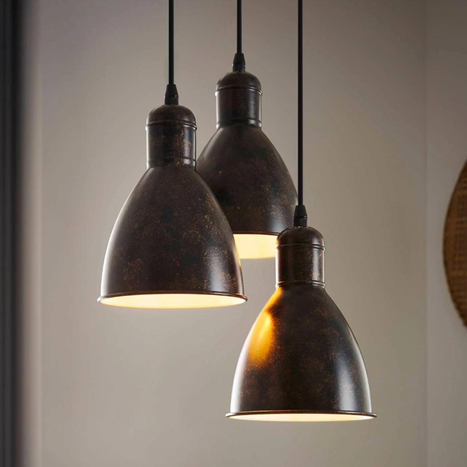 Suspension ronde Priddy 1 dans un look vintage avec 3 abats-jours