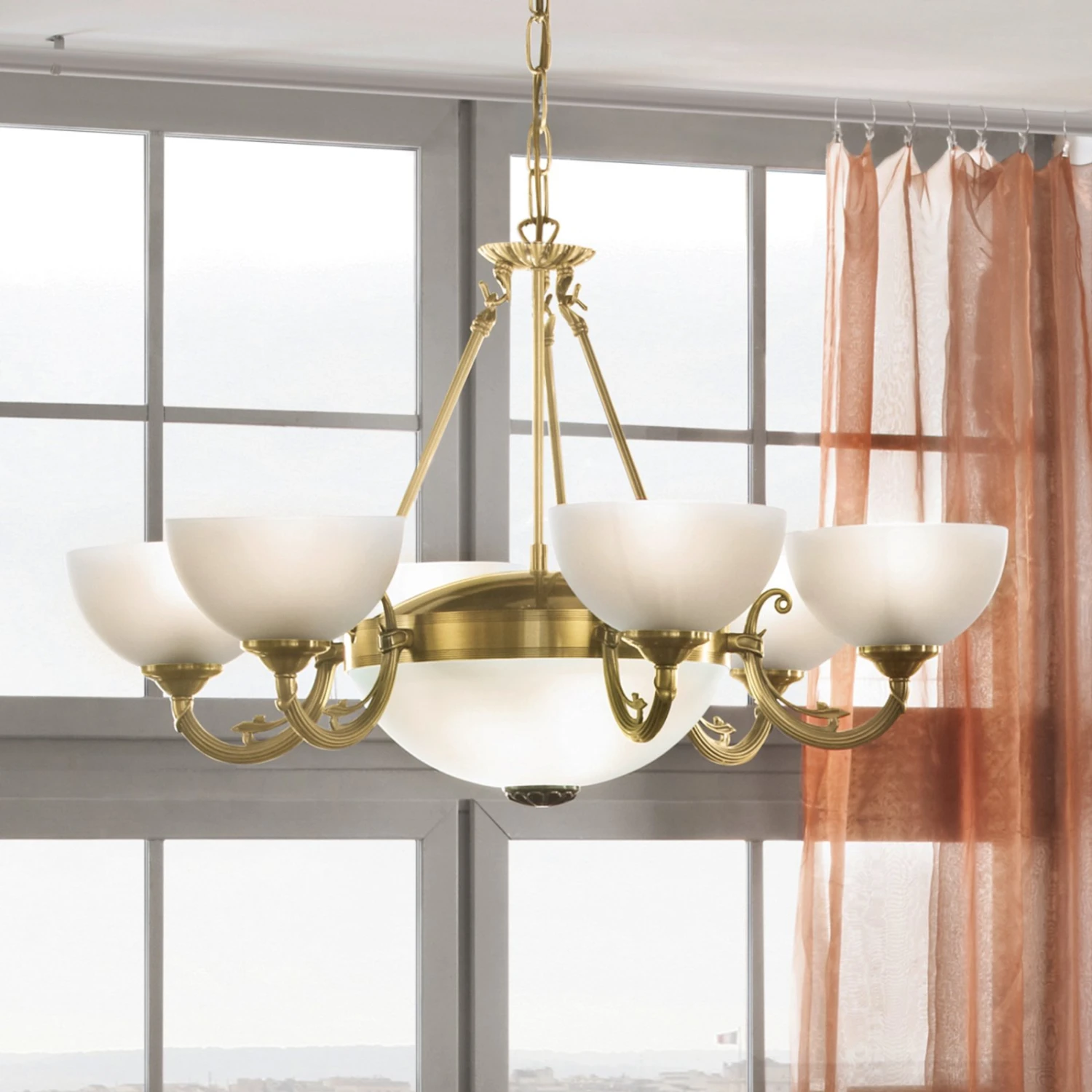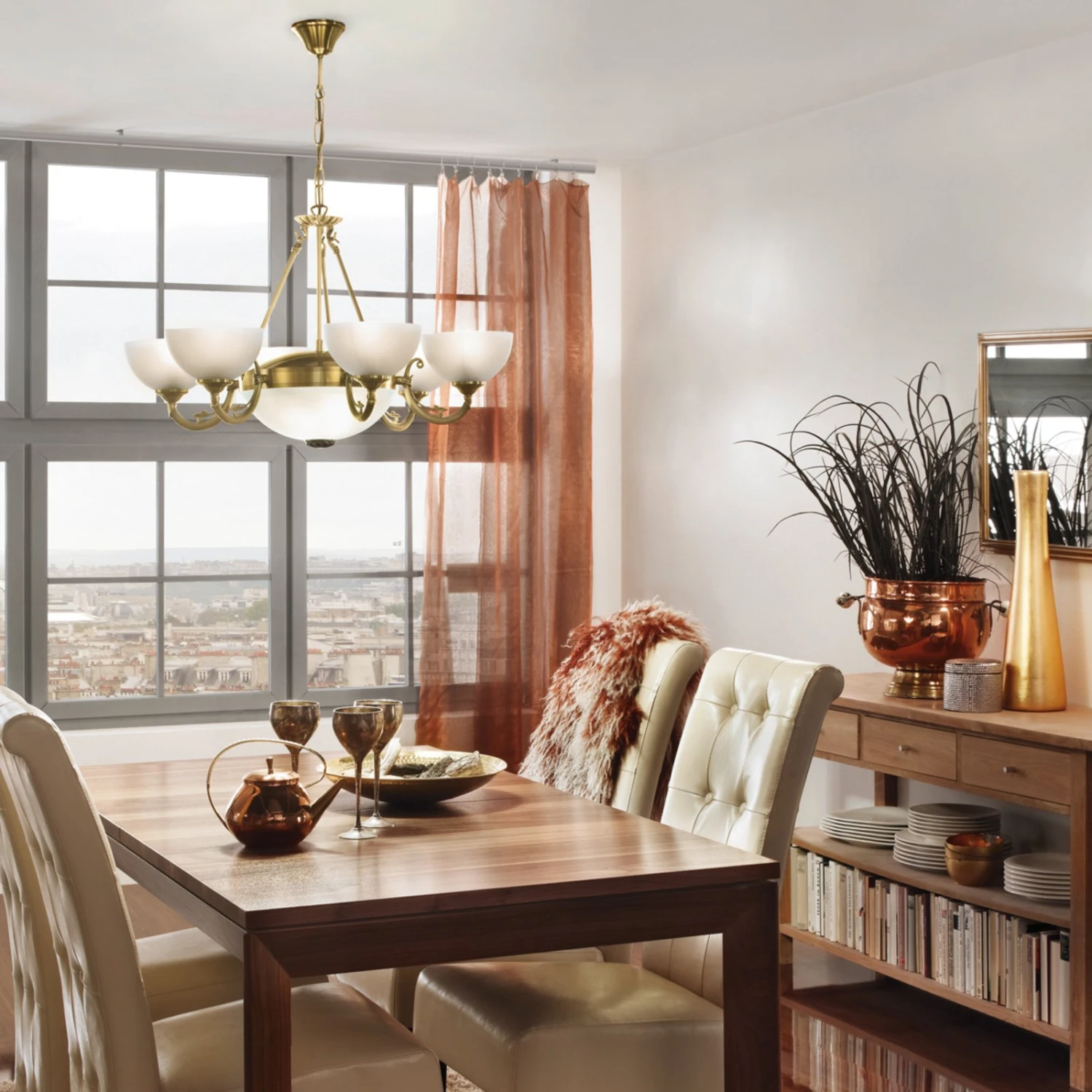 Savy est une ravissante suspension stylisée qui apporte à la pièce de la lumière mais également une certaine prestance. Le métal bruni, résultat d’un traitement chimique, confère au luminaire son aspect antique. Le style rustique du métal fusionne avec l’aspect moderne du verre opale pour constituer une œuvre d’art remarquable. Les différents abat-jour en verre, qui diffusent la lumière par leurs ouvertures pointant vers le haut ainsi que les deux globes de verre fermés qui renferment deux ampoules contribuent à créer un éclairage agréable.
