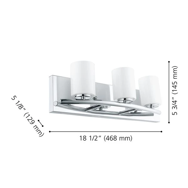 Le luminaire mural à 3 lumières Abete est l’ajout parfait à n’importe quelle de salle de bain. Le fini chrome et le verre blanc cylindrique offrent un look épuré et élégant. Ce luminaire mural peut être monté avec le verre orienté vers le haut ou vers le bas selon vos besoins et votre style.Fini chrome avec abat-jour en verre blancUtilise 3 ampoules à culot G9 de 40 W maximum (vendues séparément)Peut être installé avec l’abat-jour orienté vers le haut ou vers le basConvient aux emplacements humides