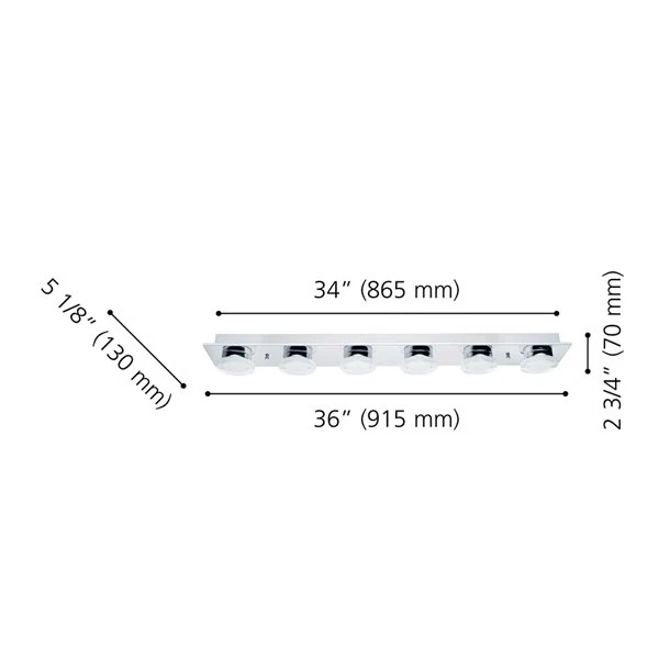 Le luminaire mural Cisterno illumine n’importe quel espace intérieur avec un effet grandiose. Une version contemporaine du luminaire à miroir traditionnel, les six lampes DEL circulaires avec diffuseurs en acrylique sont chics et contemporaines. Ce luminaire est polyvalent à la fois dans la conception et la fonction, ce qui lui permet d’être installé au plafond ou sur le mur, soit à la verticale ou à l’horizontale. Qu’il s’agisse d’une salle de bain, d’un vestiaire ou d’un couloir, ce luminaire linéaire ne manquera pas d’impressionner.Fini chrome avec abat-jour en acrylique satin et transparentUtilise 6 ampoules de 4,5 W à DEL intégrée (non remplaçables)6 x 480 (2 880) lumens, 3 000 K, blanc chaudLuminosité variable avec gradateurs compatiblesPeut être installé horizontalement ou verticalementPeut être installé comme plafonnier ou luminaire muralConvient aux emplacements humidesConforme à la norme ADA